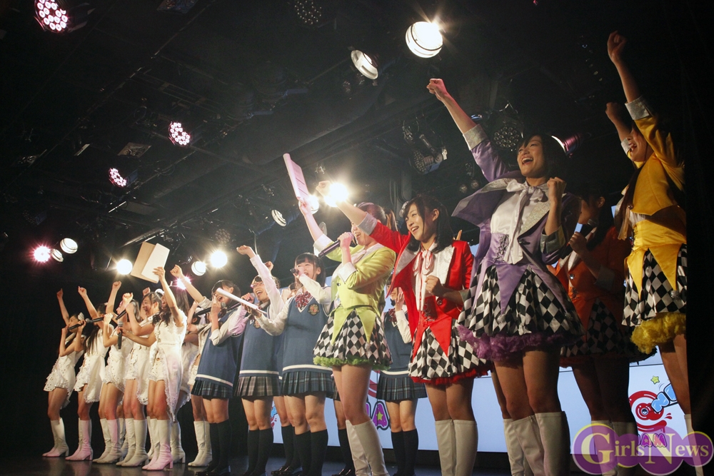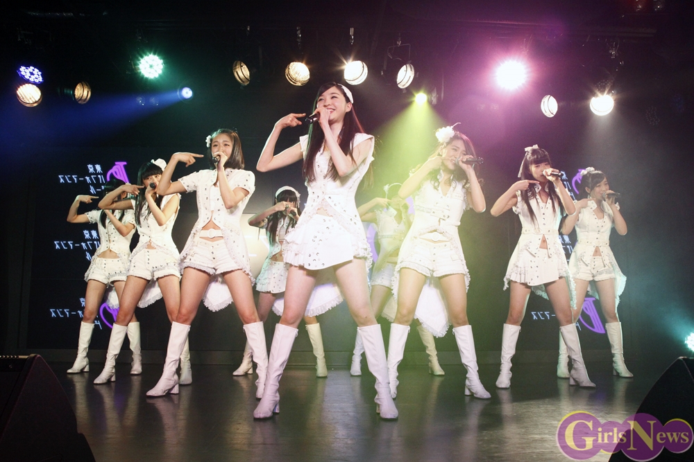 まず1組目に登場したのは東京パフォーマンスドール。普段は渋谷にある劇場・CBGKシブゲキ!!にて演劇とライブを融合した公演を行っているが、渋谷以外でライブを行うのは彼女たちにとって初めて、そしてアイドルの聖地ともいえる秋葉原でのライブとのことで、メンバーはもちろんファンの応援にも一層の気合いが入っていた。「WE ARE TPD!!」で9名それぞれがソロダンスを披露してのメンバー紹介から、「ダイヤモンドは傷つかない」「十代に罪はない」「東京ハッカーズ・ナイトグルーヴ」「夢を」「DREAMIN’」「WEEKEND PARADISE」を披露。キレキレのダンスに伸びやかな歌唱力、舞台で培われている圧倒的なパフォーマンスを見せた。