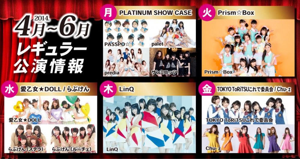 秋葉原最大級のアイドル専用劇場「AKIBAカルチャーズ劇場」で4月から行われる平日レギュラー公演のラインナップが決定した。