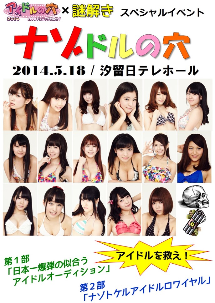 日本テレビで毎週土曜深夜放送中のオーディションバラエティ「アイドルの穴2014~日テレジェニックを探せ!」と、リアル謎解きイベントの、スペシャルコラボ企画!