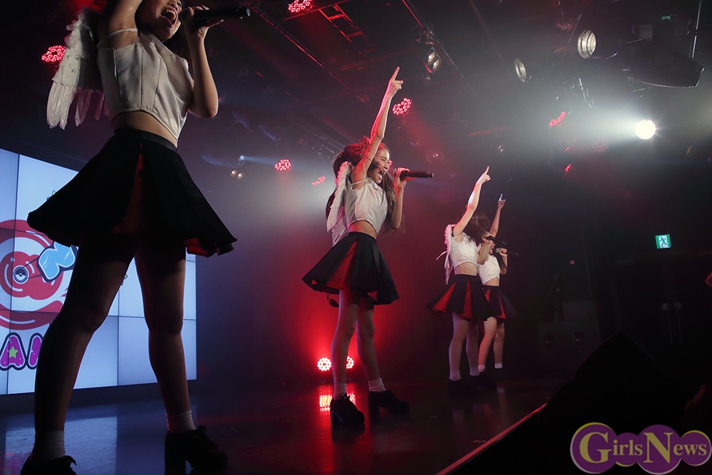 ゴシック調のイントロから平均年齢13.2歳と言う角のついた可愛らしい衣装の5人が登場し、まっすぐ立ったままで斉唱する。続く『あなたにANTHEM』からは一転、その姿からは想像できない程の激しいダンスで観客を煽ると、そのまま『Devil ANTHEM.~キミのハートを征服中~』まで4曲をノンストップで歌い上げ、鮮やかにステージを終えた。