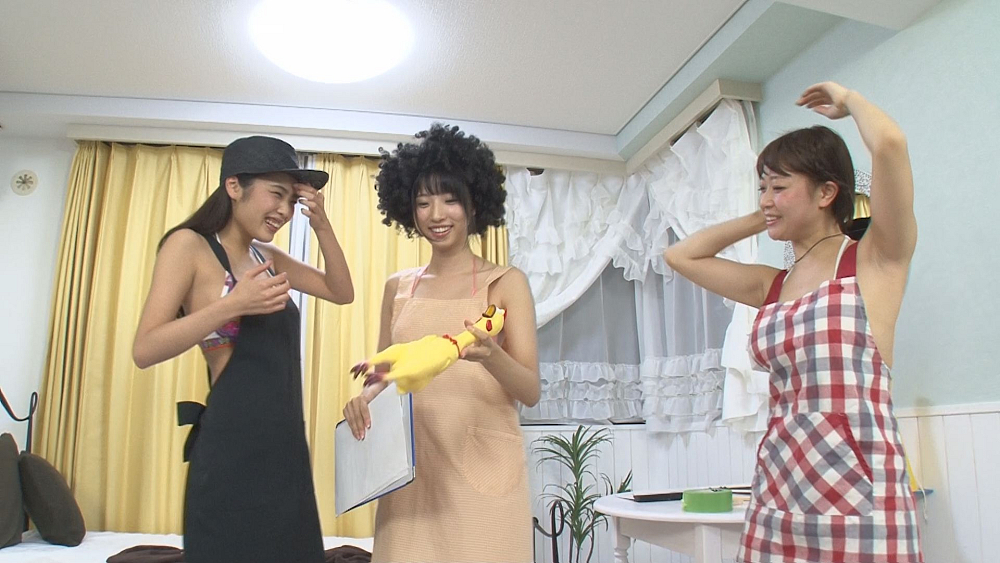 3人ともエプロンを着たり、アフロのかつらをかぶったりと、セクシーさと笑いが同居する収録となった。