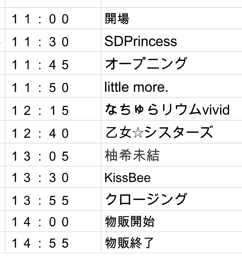 出演者は、KissBee、柚希未結、なちゅらリウムvivid、little more.、乙女☆シスターズの5組+SDPrincessです。
