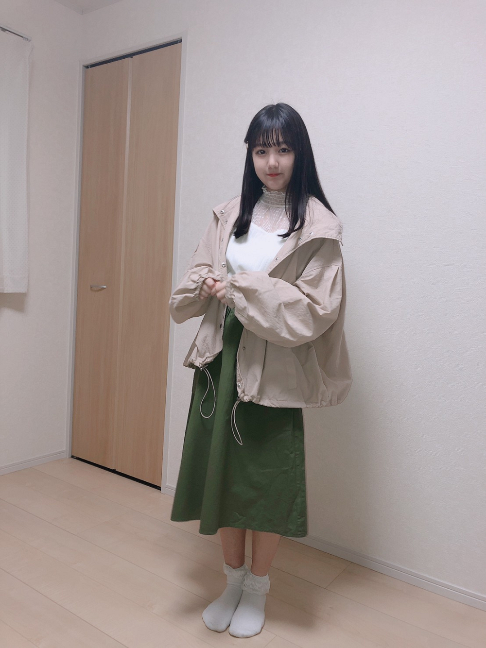 首元はレースになっているので女の子っぽくなってるのと、ピクニックは外なので上着を羽織っています。