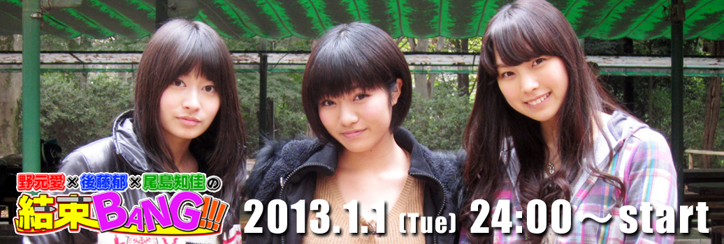 「野元愛×後藤郁×尾島知佳の結束BANG!!!」第一話は、2013年1月1日(火)24:00~スタート。(リピート放送あり)