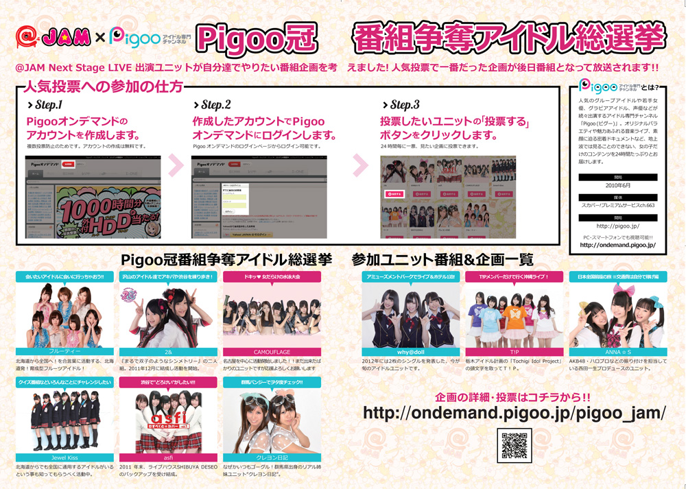 企画の詳細、投票はPigoo冠番組争奪アイドル総選挙 特設サイト http://ondemand.pigoo.jp/pigoo_jam/ まで。