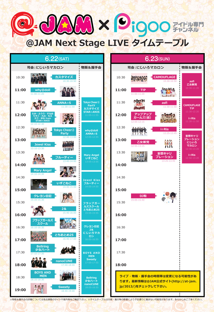 参加ユニットは、フルーティー、2&、CAMOUFLAGE、WHY@DOLL、T!P、ANNA☆S、Jewel Kiss、asfi、クレヨン日記の9組。