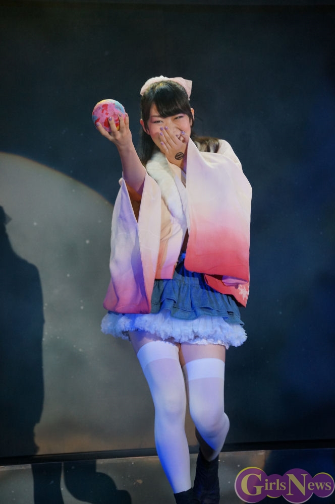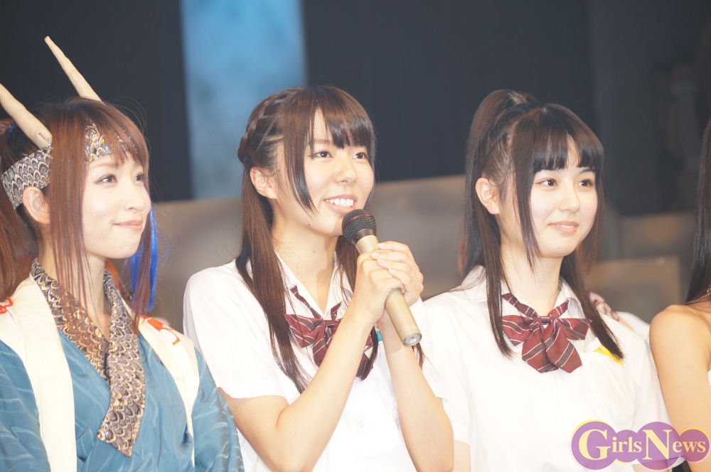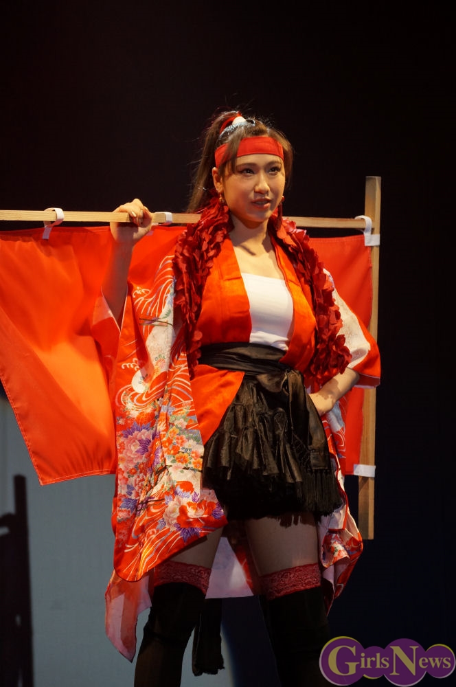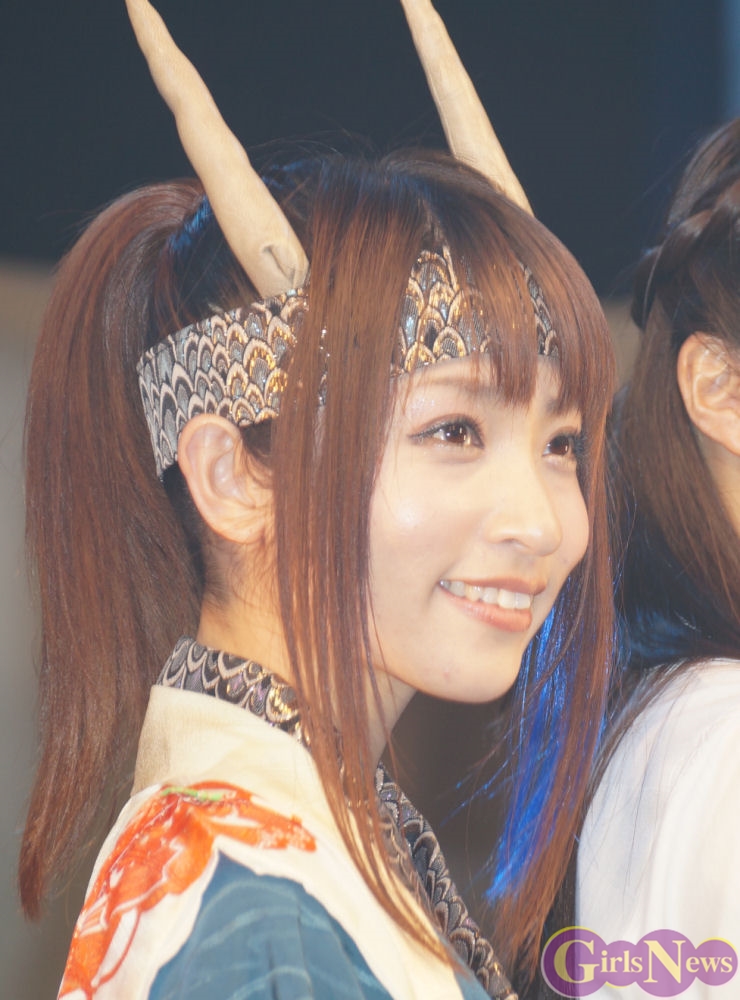 戦国降臨ガールズを肌で感じていただきたいと思います。衣装がすごく凝っていて、武将たちも格好良くありながらも女の子らしさの可愛い部分があるのでそこにも注目して欲しいです。7月3日から始まりました戦国降臨ガールズは7日までやってますので是非皆さん足を運んでください。みんなで全力投球で頑張っていきます!」とアピール。