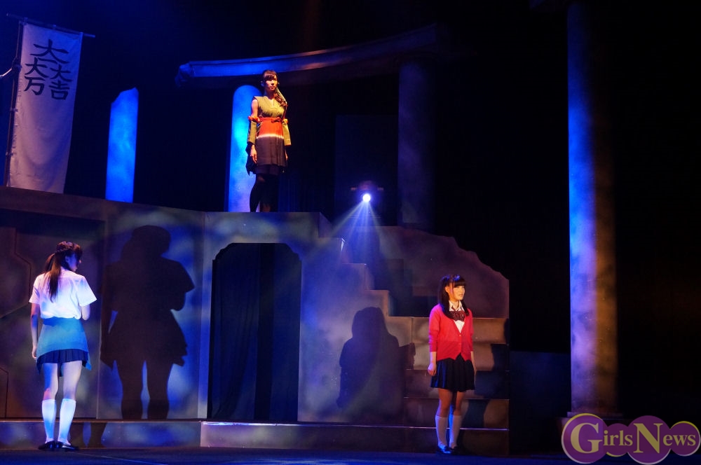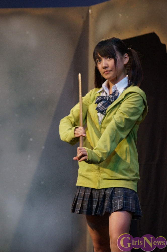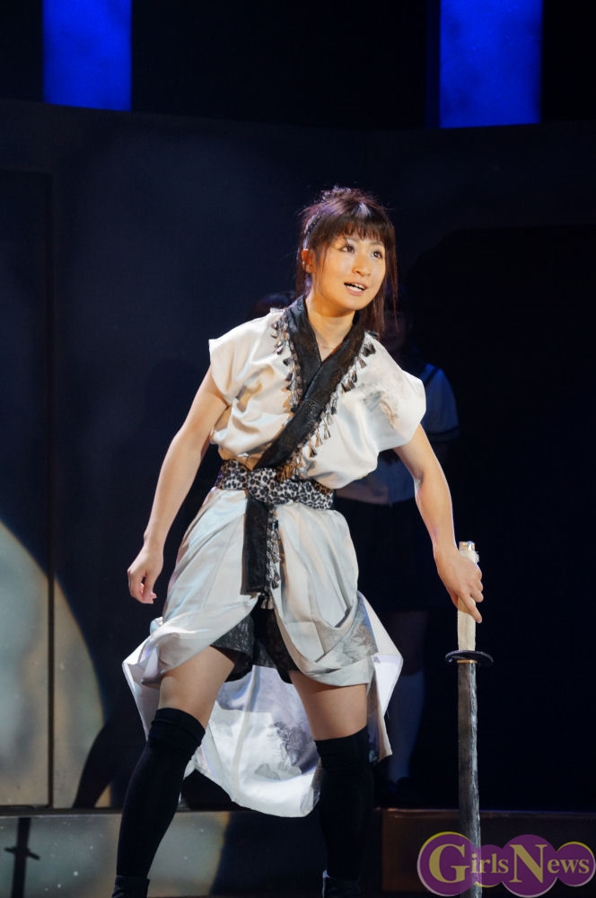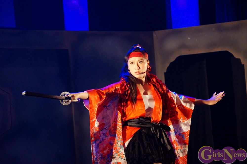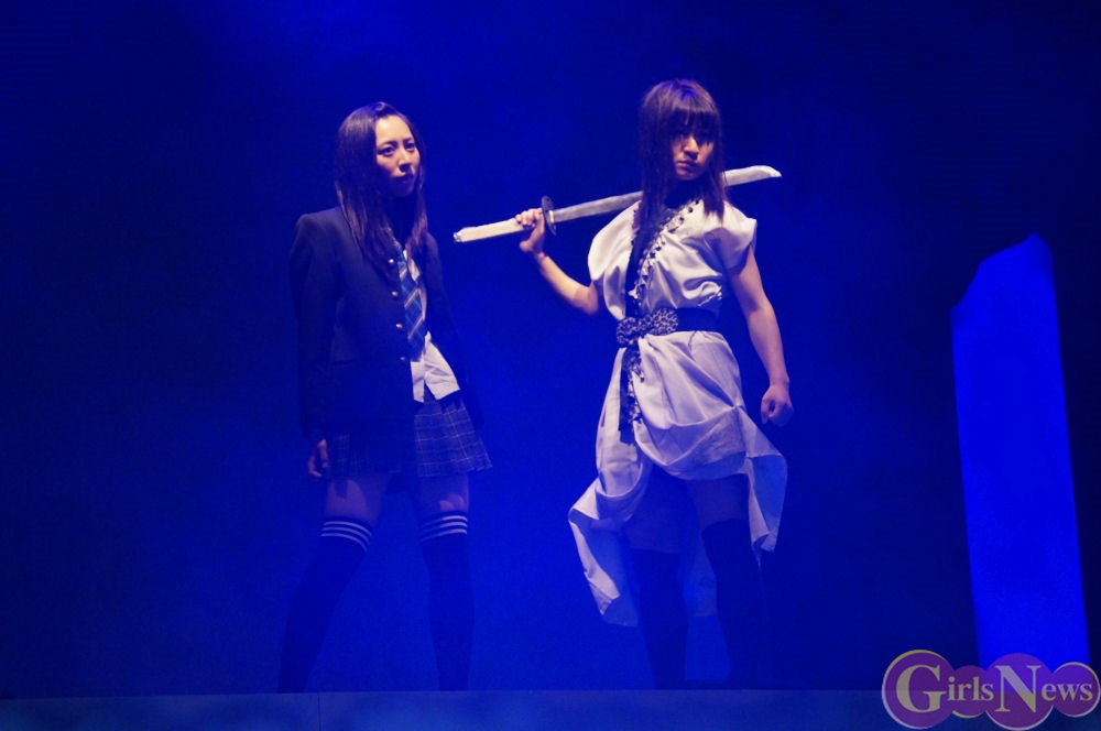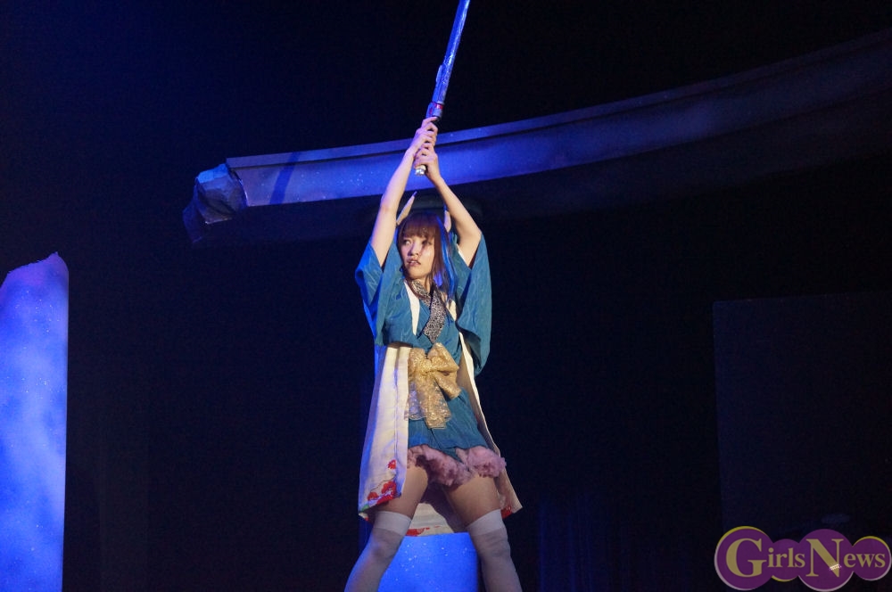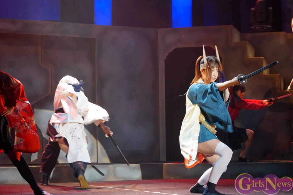 斉藤雅子さんは「殺陣が始めてだったのですごい緊張したのと、すごい難しかったんですけど、みんな女の子なのにこんな格好良い殺陣ができるなんて・・・」と語ると、加藤沙耶香さんは斉藤雅子さんのことについて「本当に殴られるみたいで怖いと言って、殺陣付け中に泣いてました。」と裏話を語る。