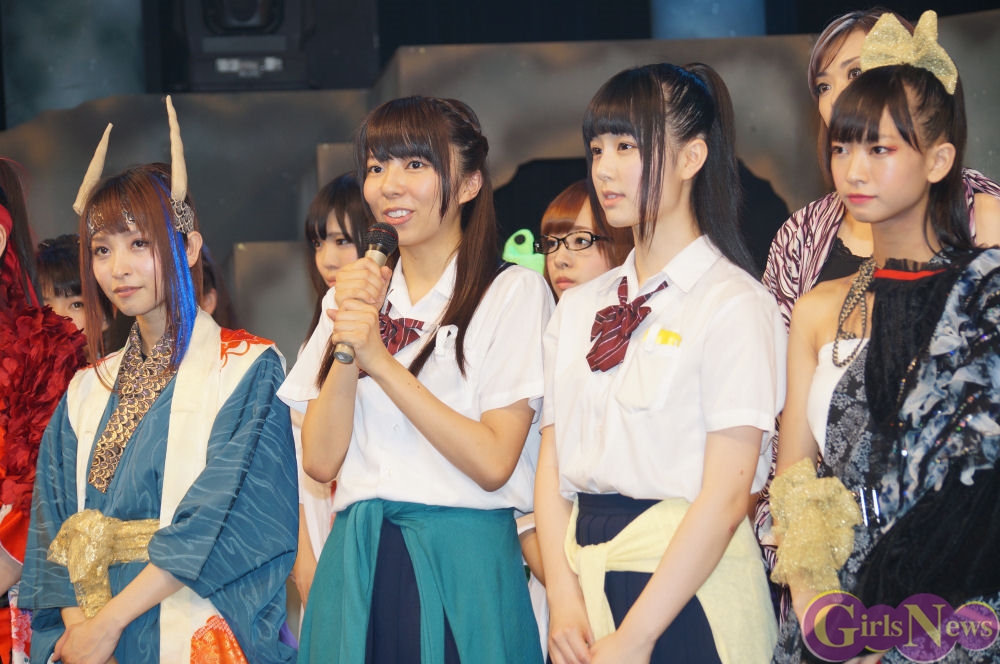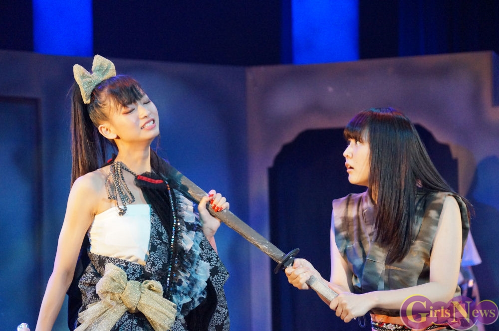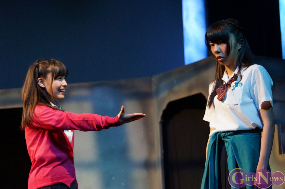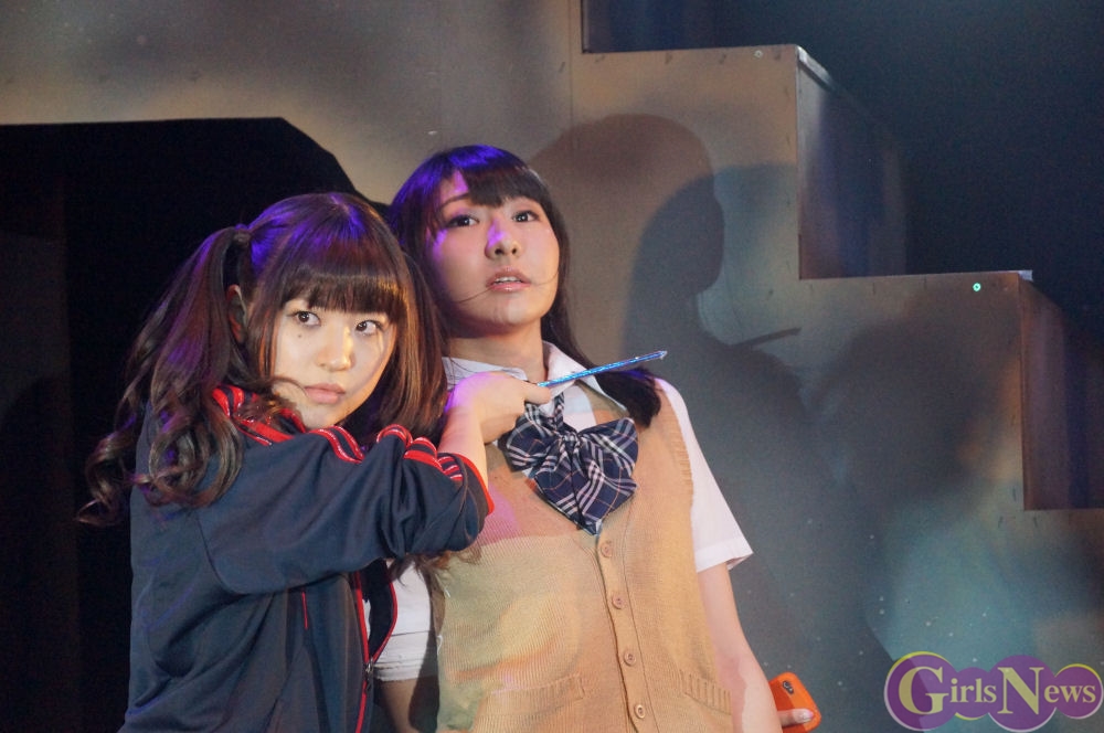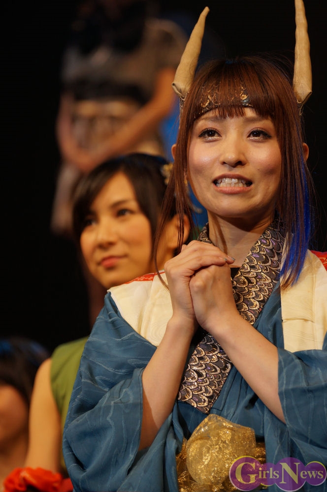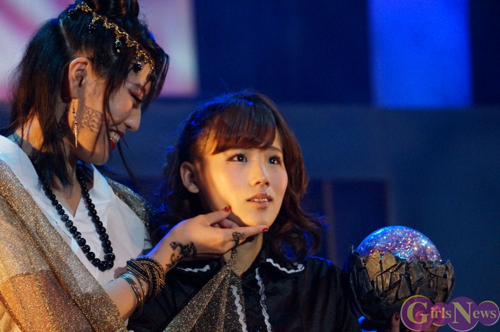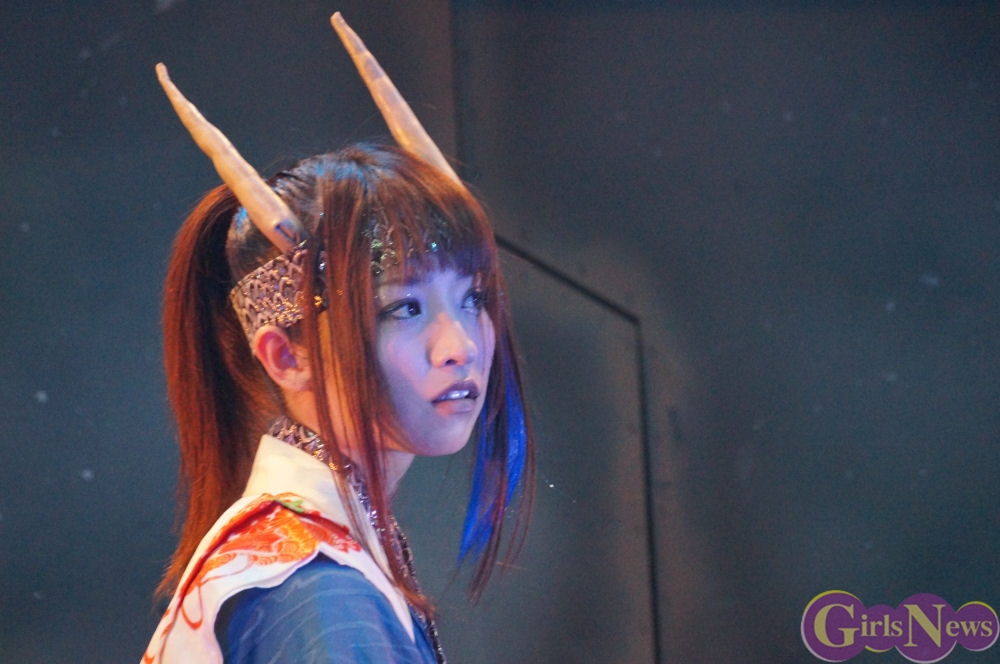 斉藤雅子さんは「殺陣が始めてだったのですごい緊張したのと、すごい難しかったんですけど、みんな女の子なのにこんな格好良い殺陣ができるなんて・・・」と語ると、加藤沙耶香さんは斉藤雅子さんのことについて「本当に殴られるみたいで怖いと言って、殺陣付け中に泣いてました。」と裏話を語る。