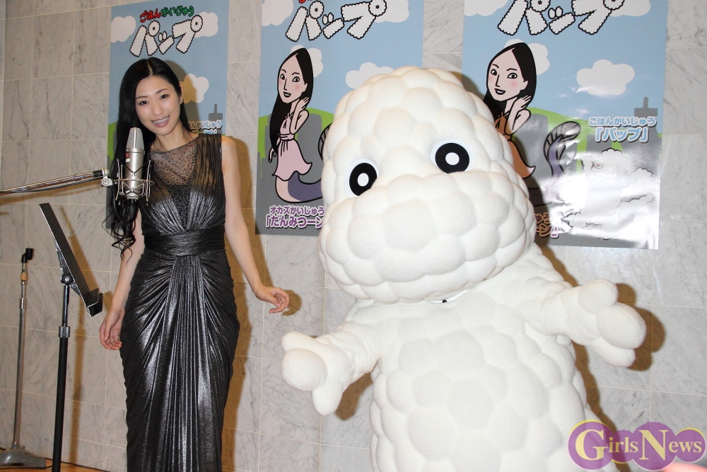 うなぎをイメージした背中の開いたセクシーなドレスで「パップ」と共に登場した壇蜜さんは「おかずかいじゅうって意味深なんですけど…うなぎをスタッフの方が考えてくれたキャラクターですし、好き嫌いが激しく分かれるという部分では、自分もうなぎも同じなんじゃないかと思っています。」とお気に入りの様子。
