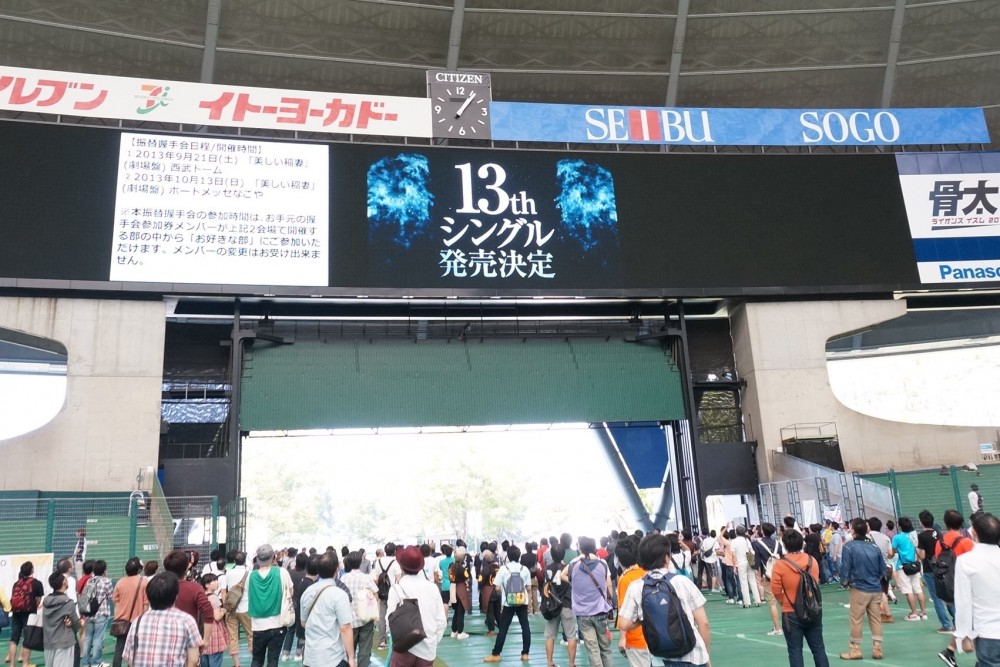 13時前に西武ドームにサイレンが鳴り響くと、オーロラビジョンに13枚目のシングル発売のVTRが流され、来場していたファンからは大きな拍手が沸き起こった。7月に発売された12枚目のシングル「美しい稲妻」は発売初週で50万枚を売り上げ、オリコン週間シングルランキング2週連続首位を獲得する大ヒットになっており13枚目のシングルも期待される。