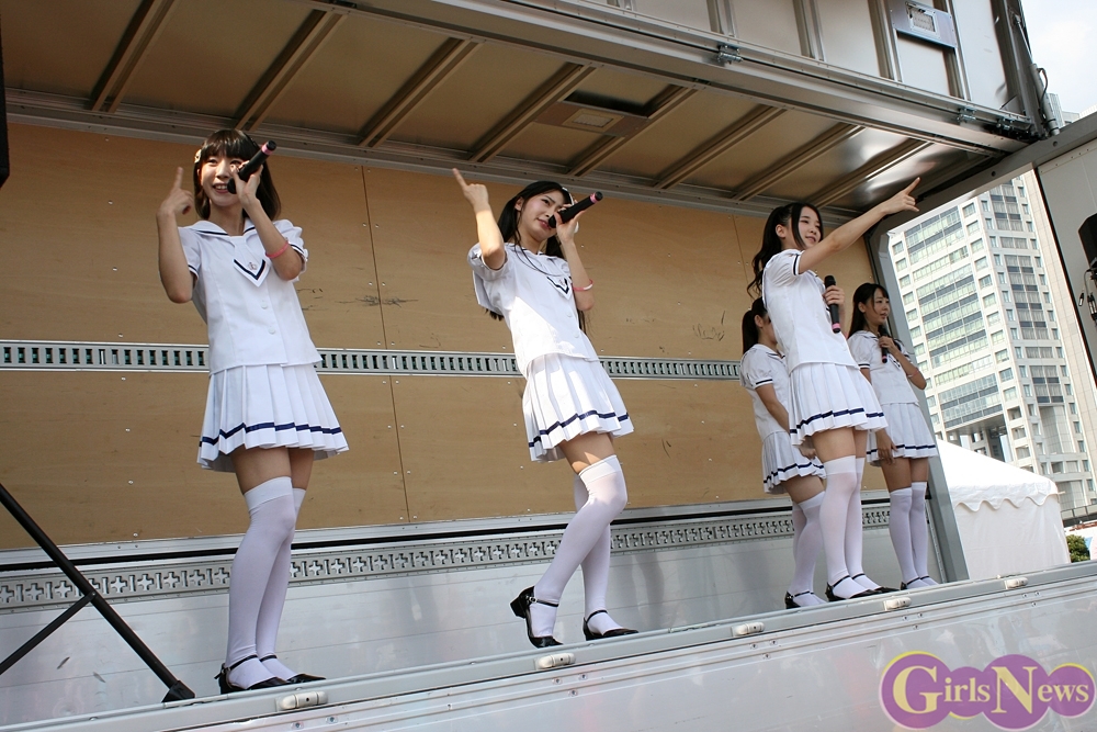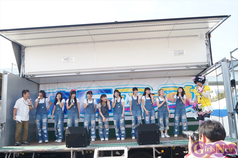 ALLOVERの加藤ありささんは「この青空とすごい近い飛行機とそして車! もうなんか東京っていいなと思いました。」と、ステージ前に広がる光景に感動。