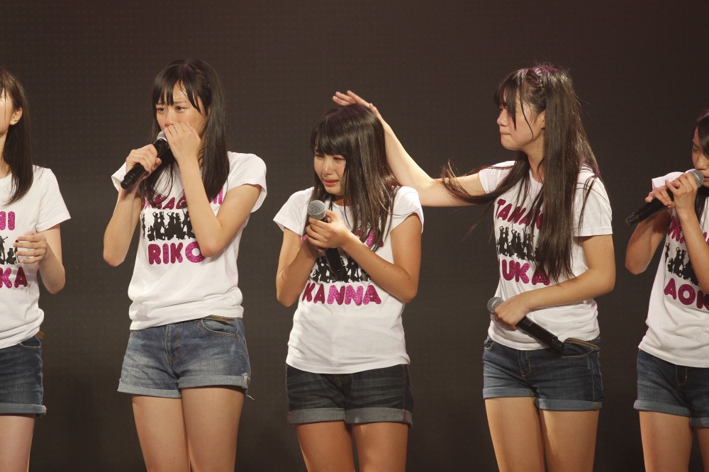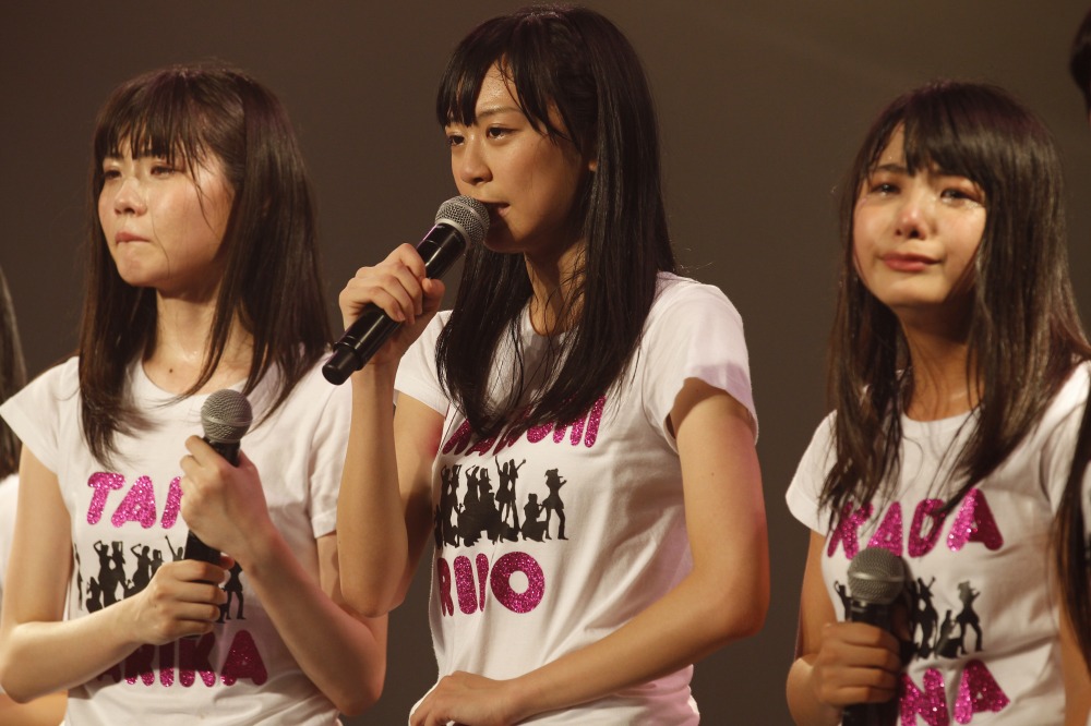発表を受け、メンバーは皆号泣しながら、「びっくりした!!」「嬉しい!!」と喜びの声をあげた。研究生最年長の坂口理子さんが「次のステージに立つということで、一生懸命頑張ります!!」と決意を述べ、劇場内は温かい声援に包まれた。