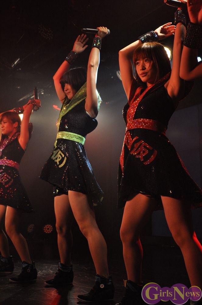 劇場がオープンして更に激戦区となった秋葉原での公演にふさわしくアップアップガールズ(仮)の魂が込められた『SAMURAI GIRLS』からライブがスタートし、刀を使ったカッコイイ演出にしびれるファンが続出!