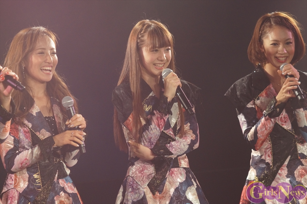 2曲目はDiVA2枚目のシングル「Cry」、3曲目の「私だけだって言ってよ」は、以前DiVAが出演した7cm主催のイベント「TryOut」の企画でカバーしたReady Candy Campの曲。メンバーで振付を考えたりハモリをやったりと思い出深い曲なので、今回の公演に取り入れたそう。福野来夢さんが「すごいいい曲なので自分らのものにしてるみたいな感じありますけどね」とコメントしている通り、しっとりとしたハーモニーを聴かせ、まるでDiVAの持ち歌のように感じられるほど。