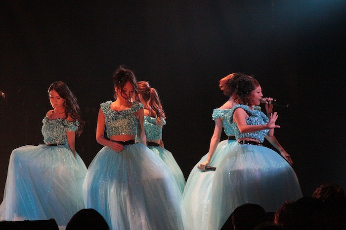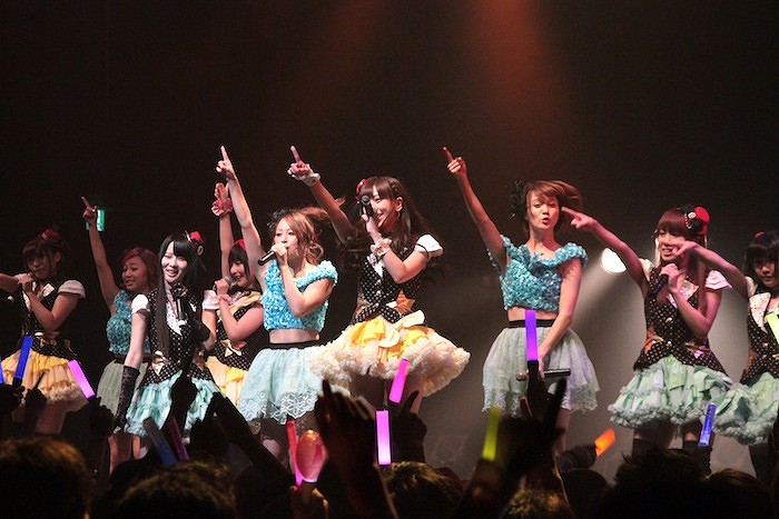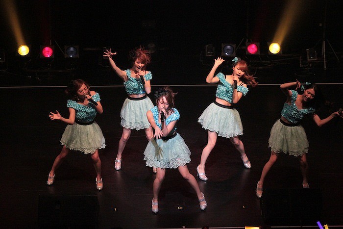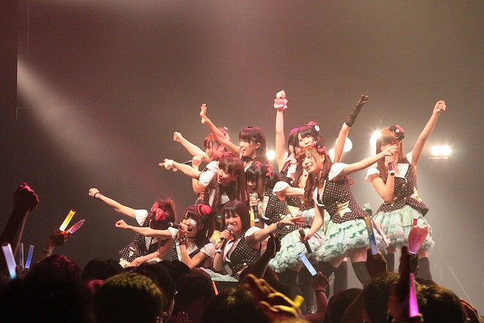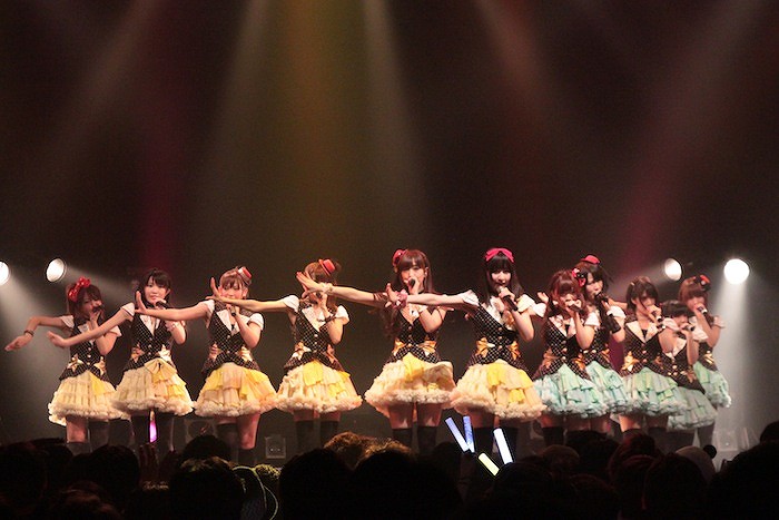 第1部では、それぞれのユニットが5曲づつと、2組全員が参加した16人で歌うコラボ曲を2曲という構成で集まったファンを沸かせたが、圧巻だったのは夕方から行なわれた第2部。それぞれ約10曲づつ披露した上で、コラボ曲も全4曲を披露。第1部の約2倍の時間でのライブという事もあり、途中での衣装チェンジなどもあり、各ユニットの代表曲を余す所なく堪能できる構成にファンも熱狂!