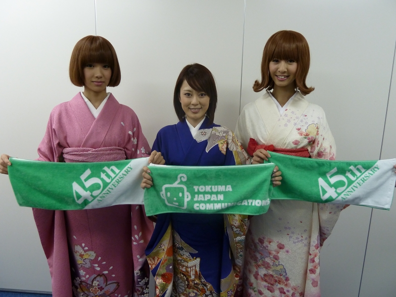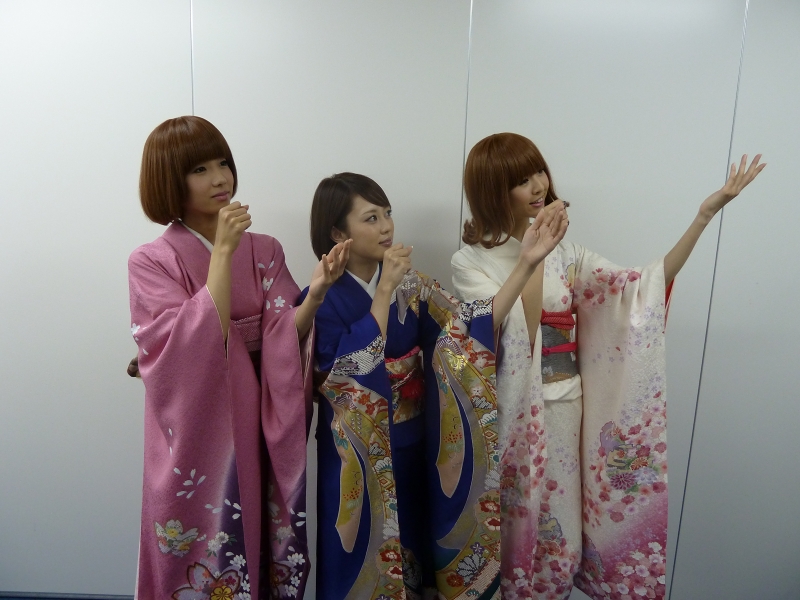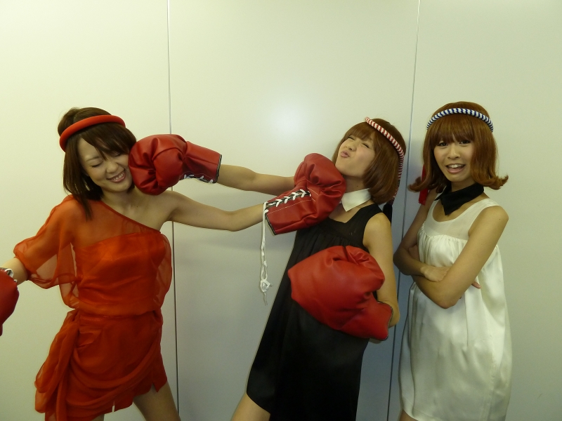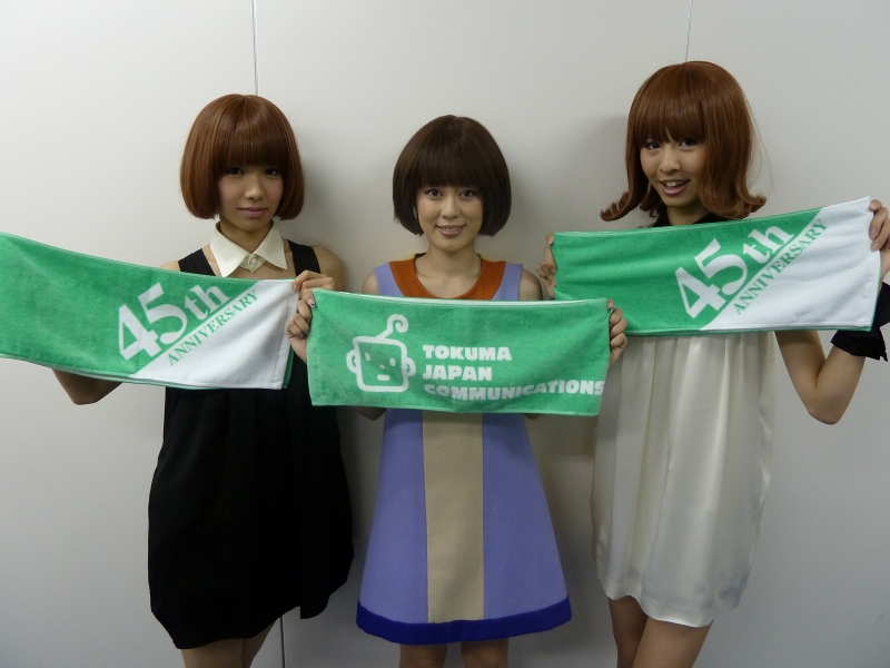 最後はサッカーのユニフォーム交換よろしく、衣装を交換し撮影会を実施したが、その撮影会の最中に所属レーベル徳間ジャパンコミュニケーションズが設立45周年にあたる事をスタッフから聞かされ、3人揃ってそのピーアールにも一役買う事を誓い合った。