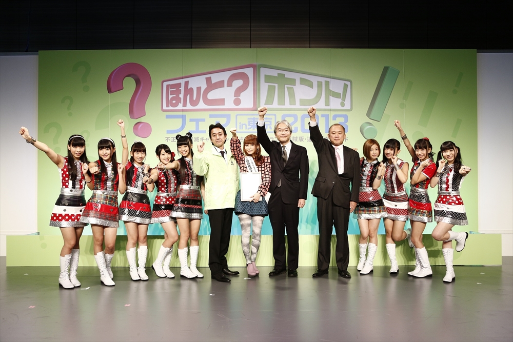 チキパこと9人組アイドルグループCheeky Paradeが10日(日)、秋葉原ベルサールにて行われた不正商品撲滅キャンペーン、「許さない!偽ブランド・海賊版・違法ダウンロード ほんと?ホント!フェア in 東京2013」に登場、キャンペーンの応援隊に就任した。