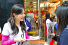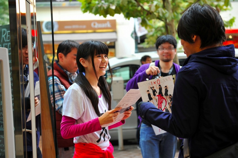 その後、TPDの活動拠点である渋谷に移動し、タワーレコード渋谷店前にて“オリジナルうちわ”を配布。肌寒くなってきたこの11月に“うちわ”を配布するというのは、ちょっと季節外れに感じるかもしれないが、このうちわにはTPDメンバーとお客様をつなぐ大きな役割がある。このうちわにお客様からのメッセージを記入して、TPDの公演当日の開演30分前までに持参すれば、メンバーが直筆でお返事を書いて公演後にスタッフよりお戻しされるという、メッセージ交換ができるアイテムなのだ。懸命にうちわを配りながら、声だしをしている姿に、ショップを訪れていた多くのお客様は「TPDって復活したんだ!」「メンバーみんなかわいいですね!」と新生TPDをアピールできたようだった。終了後、メンバーの上西星来さんは「秋葉原のお練り活動で、初めて私達のことを知ってくれ、渋谷にまで会いにきてくれた方がたくさんいて、とても嬉しかったです。あとは私達の公演の芝居・歌・ダンスを見てもらえるようもっと頑張ります!」とコメント。