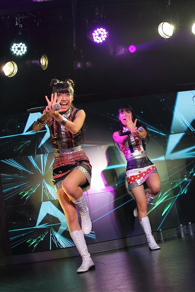 この日は渋谷PARCOにある“ソーシャルTV局”『2.5D』とコラボした映像をバックに、全9曲を披露。前衛的な活動でリピーターの心を掴んでいる2組とあって、その姿はまさに“鬼に金棒”。映像演出を『2.5D』が務め、それに引けを取らないパフォーマンスを魅せた。