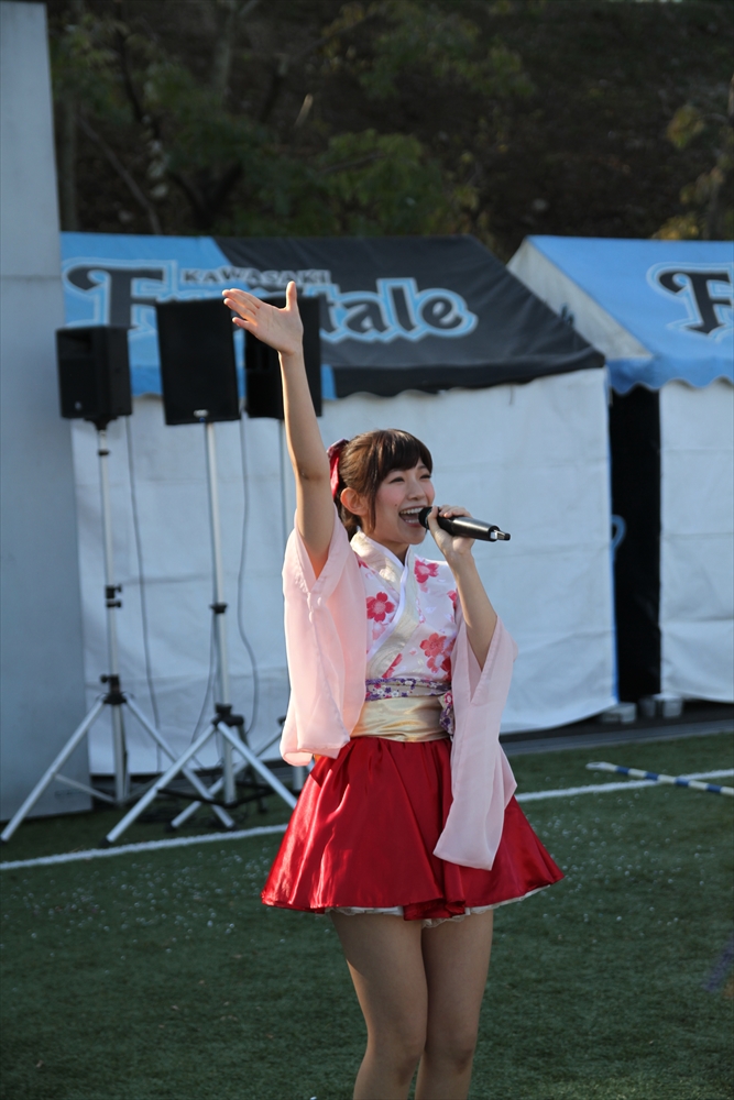 そしてこの日一番の盛り上がりを見せたのは、川崎といえばもちろん欠かせない“川崎純情小町☆”のステージ。メンバーが登場するとその横にはなんと“川崎フロンターレ”マスコット“ふろん太”君が!まさに川崎市民には夢の競演ともいえるコラボレーションで川崎のテーマソングともいえる「好きです かわさき 愛の街」をパフォーマンスし、会場はこの日一番の盛り上がりを見せた。