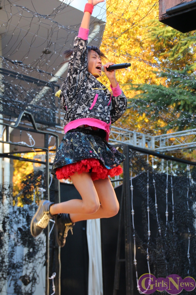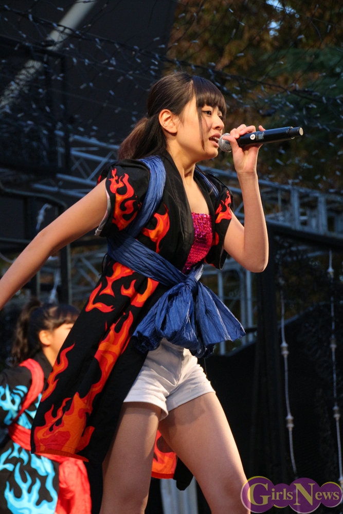 『小桃音まい』さんは、小柄ながら客席と一体になって盛り上がるステージに定評がある。夏に発売したメジャーデビュー曲『BANG BANG鼓笛サンバ』では、会場のファンと一緒にフラッグを振って、ステージを右に左へと移動した。