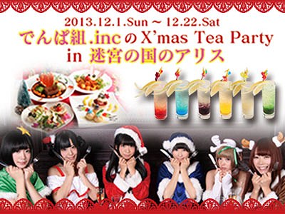 12月1日(日)~12月22日(日)までの期間中、でんぱ組.incをイメージしたスペシャルX’masメニューが銀座『迷宮の国のアリス』に登場!「でんぱ組.inc」のメンバーカラーの“カラフルサンタ帽”付きで提供される。