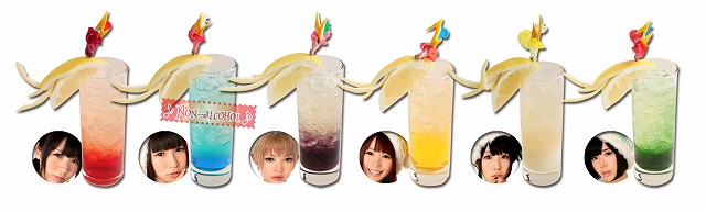でんぱ=電波をイメージしてビリビリと刺激的なソーダを使ったメンバーカラーのカクテル全6種。「Blue Ver.ピンキー」のみノンアルコール