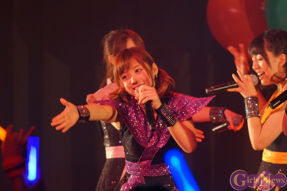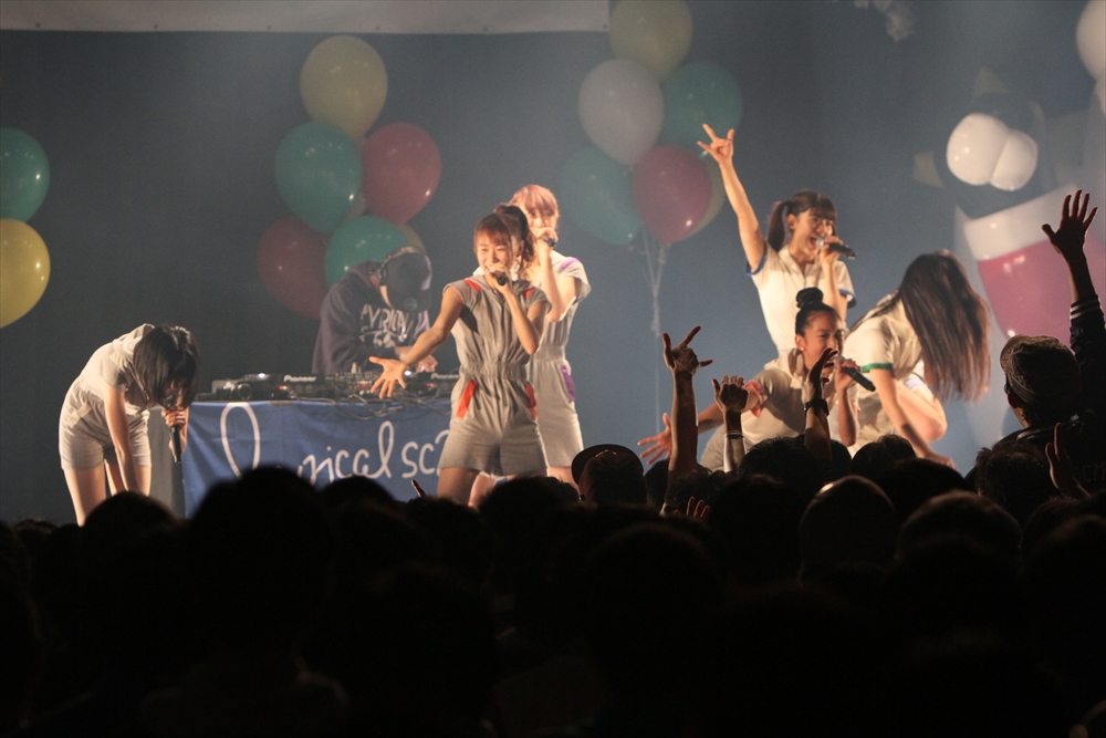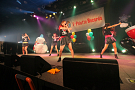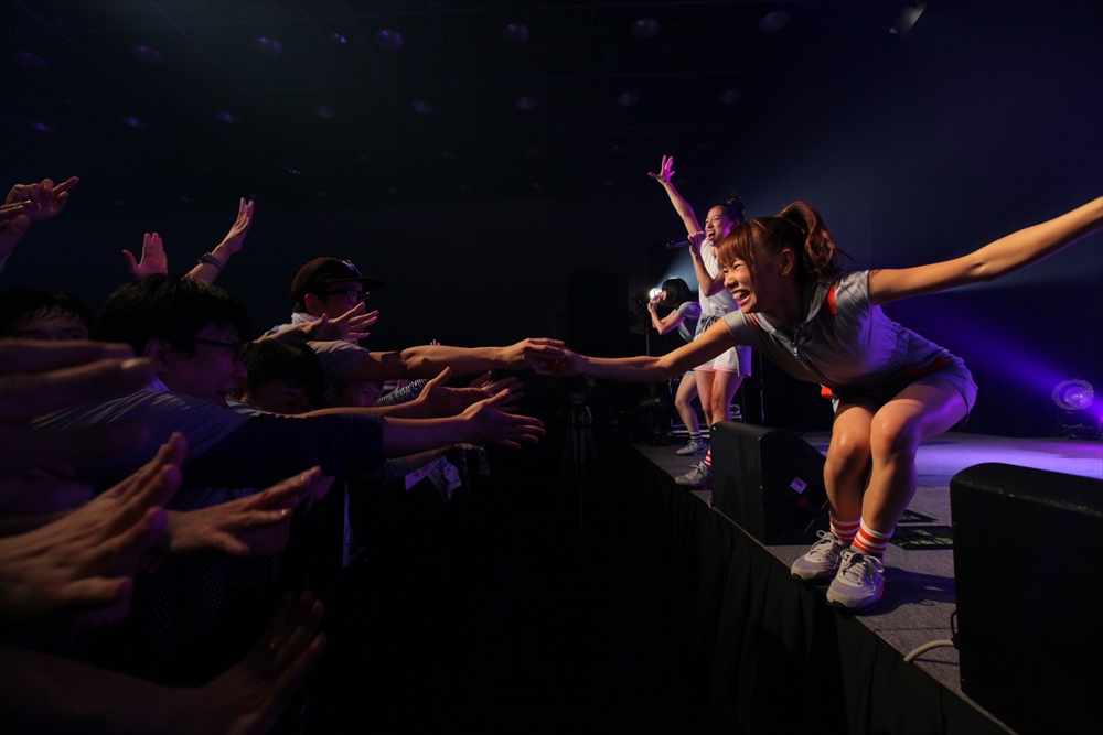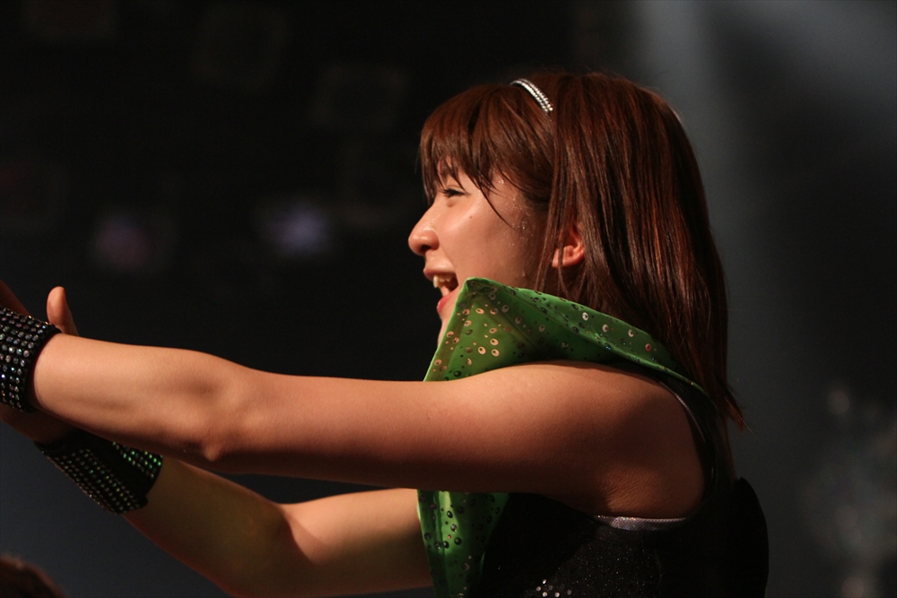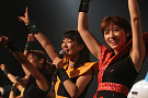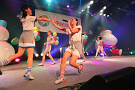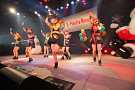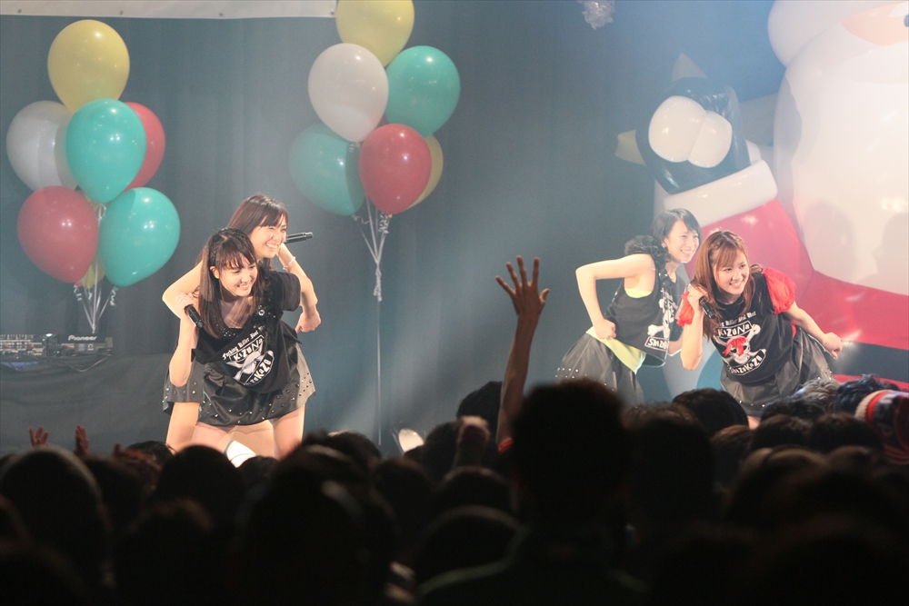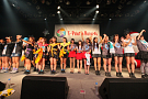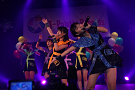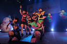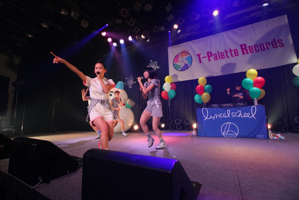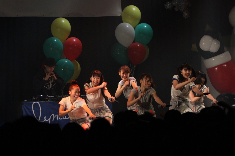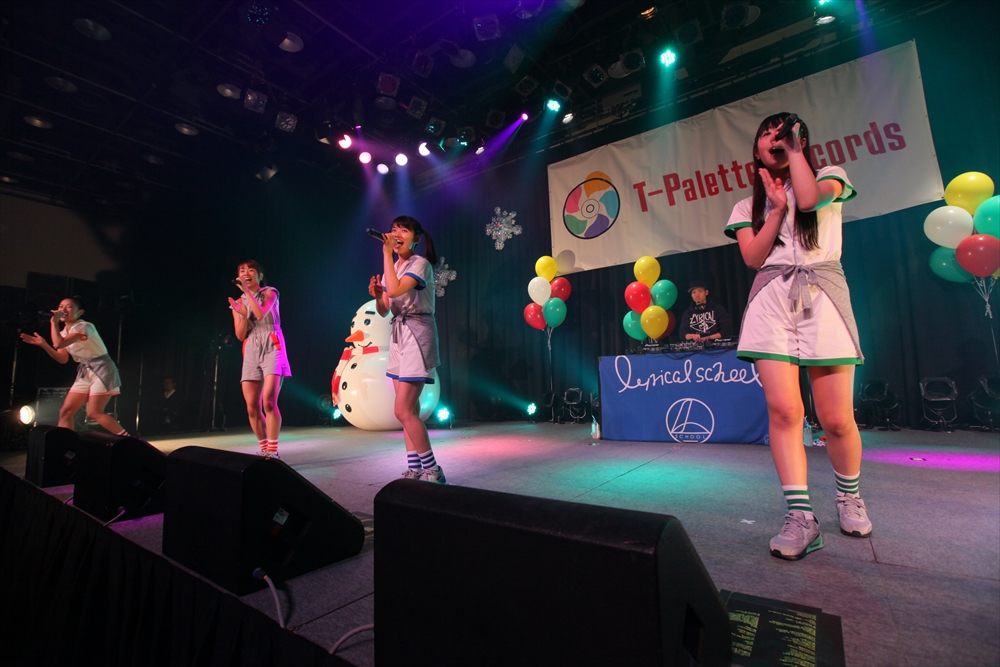 Tパレが擁する二大ラップアイドルのもう一つ、lyrical school(リリスク)は7番目の登場。大きな盛り上がりを見せたライムベリーに負けんとばかりに、全力のパフォーマンスを披露した。今年はメンバーの入れ替わりもあり、現メンバーでは初のTパレ感謝祭。ラストのphotographでは、会場全体が「今日はお祭り!」というメンバーの呼び掛けにこたえサイリウムやタオルを振り、大興奮のステージを演出した。これに感極まったのか、同じく今年から2代目リーダーに就任したayakaさんが感極まって泣いてしまう場面もあった。昨年のこのライブで嶺脇社長に「ヌルい」と言われて一年、この日は社長から「20~30分くらいのステージだったらどこにも負けない」というお墨付きをもらったリリスク。地盤が固まった2014年は、あっと驚く成長を見せてくれるのではないだろうか。