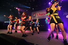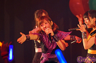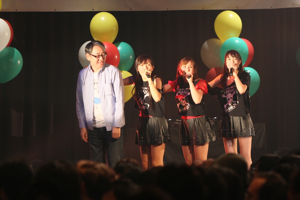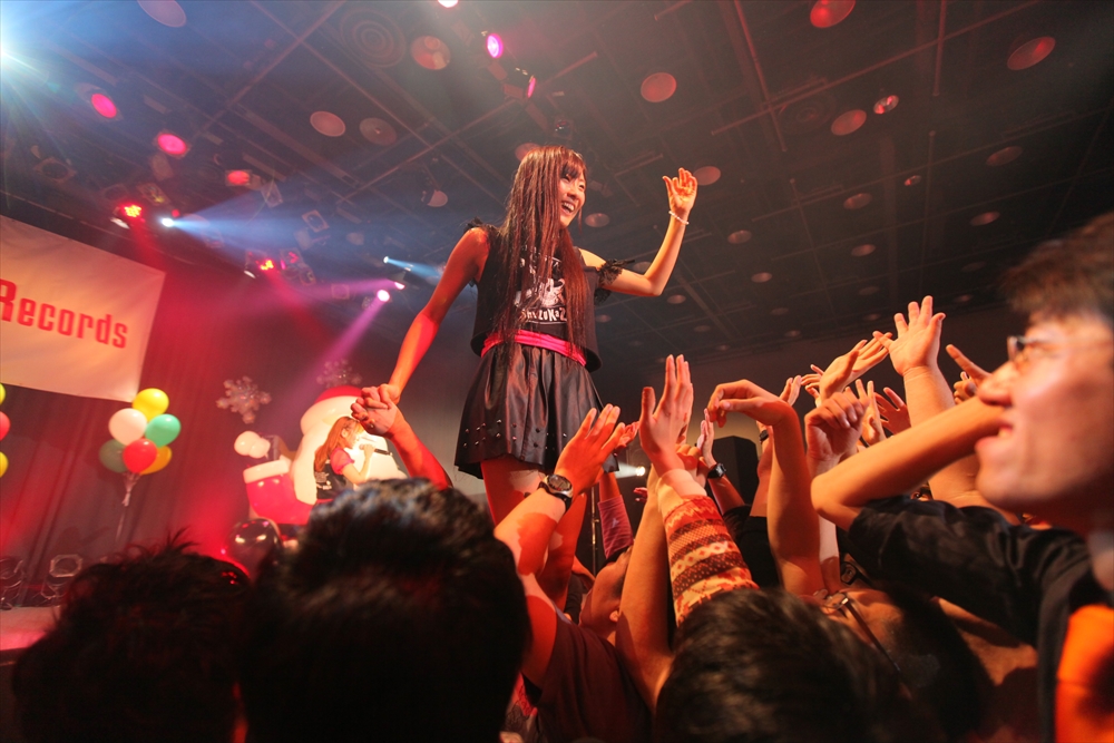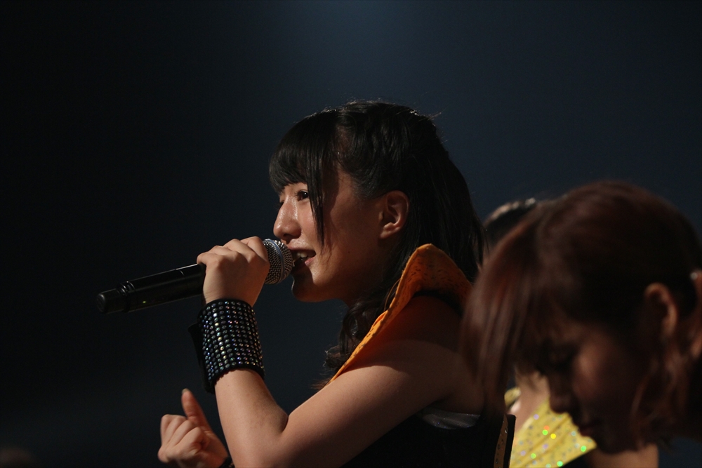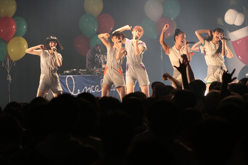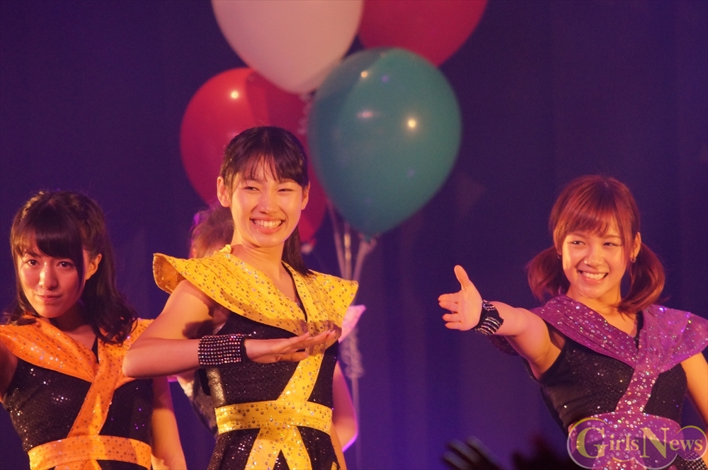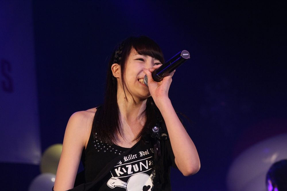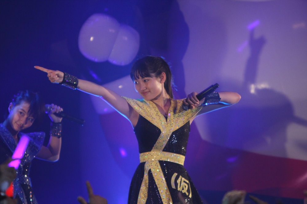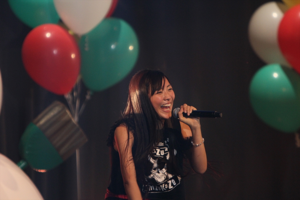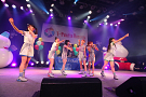 Tパレが擁する二大ラップアイドルのもう一つ、lyrical school(リリスク)は7番目の登場。大きな盛り上がりを見せたライムベリーに負けんとばかりに、全力のパフォーマンスを披露した。今年はメンバーの入れ替わりもあり、現メンバーでは初のTパレ感謝祭。ラストのphotographでは、会場全体が「今日はお祭り!」というメンバーの呼び掛けにこたえサイリウムやタオルを振り、大興奮のステージを演出した。これに感極まったのか、同じく今年から2代目リーダーに就任したayakaさんが感極まって泣いてしまう場面もあった。昨年のこのライブで嶺脇社長に「ヌルい」と言われて一年、この日は社長から「20~30分くらいのステージだったらどこにも負けない」というお墨付きをもらったリリスク。地盤が固まった2014年は、あっと驚く成長を見せてくれるのではないだろうか。