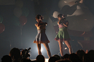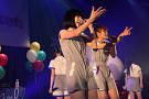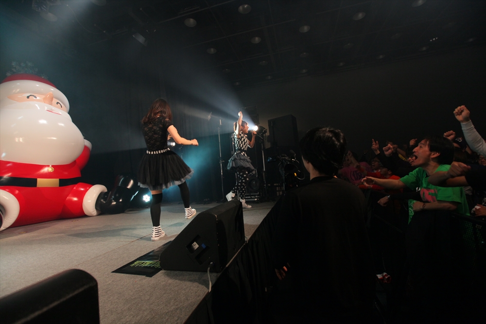 まず登場したのは、Tパレ立ち上げから所属しているバニラビーンズ(バニビ)。過去2回では大トリを務めてきたバニビだが、今回は一転してトップバッターとしてのステージになった。これには二人もいろいろと気づきがあったようで、「例年私たちの出番のころにはみんなぐったりしていたのに、今年は違う」と笑いを誘っていた。ライブは全5曲。武器の一つともいえる軽妙なMCと、7年間の活動の証である確かな歌唱力で、まだ硬さの残る会場を暖めた。今年を振り返り、「たくさんライブをして、特にフェスへの出演が充実した一年だった。サマソニなどではMCをやらせてもらった」(レナさん)と充実の一年を振り返ったバニビ。最後は嶺脇社長自ら、来年のシングルリリースについて打合中であることを明かした。結成8年目、Tパレ4年目となる来年も、二人から目が離せない。