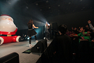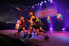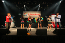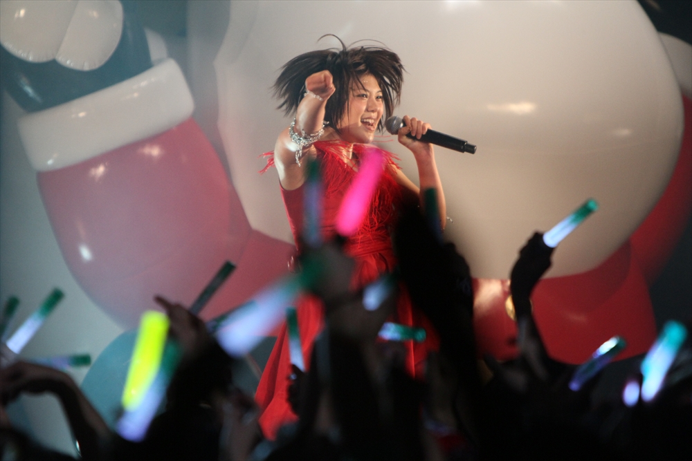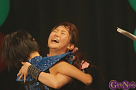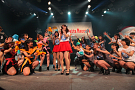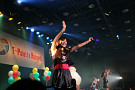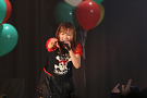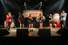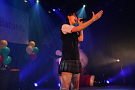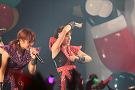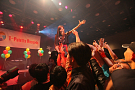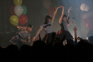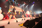 4組目はライムベリー。メンバーHIMEさんの療養のため、8月から4カ月の休養を挟みこの日が再始動一発目のライブとなった。それだけに、名前がコールされた瞬間から会場の盛り上がりはピークに達する。そして4人が登場し、1曲目の「SUPERMCZTOKYO」が始まるはず・・・だったのだが、なんとDJ HIKARUさんのDJブースから音が出ないハプニングが発生。復帰ライブ初っ端からのこのアクシデントに、メンバー自ら「やっぱりライムベリー、何かおこるね」と苦笑いした。機材が復旧し、再び自己紹介ラップからライブが始まると、そこからはノンストップ。爆発的な盛り上がりが6曲目のMAGIC PARTYまで続いた。MCでは休養期間について尋ねられ、「ルミネでお笑いを見ていた」(HIKARU)、「寝ていた」(MIRI)、「部屋の衣替えをしていた」(YUKA)と意外な回答が続出したが、そんなマイペースさが突然のハプニングにも対応できるような力を産んでいるのだろう。シングルリリース、ワンマンライブ成功、休養期間と激動の1年を過ごしたライムベリー。来年は、この経験を生かしてさらなる成長を見せてくれそうだ。