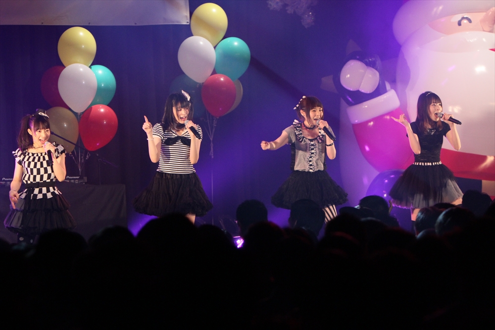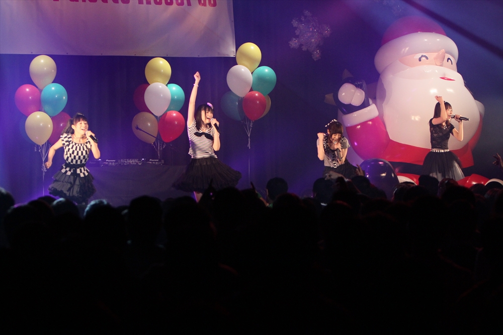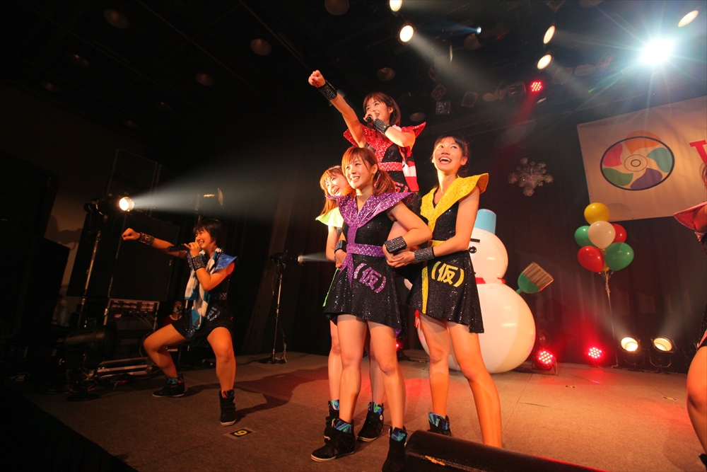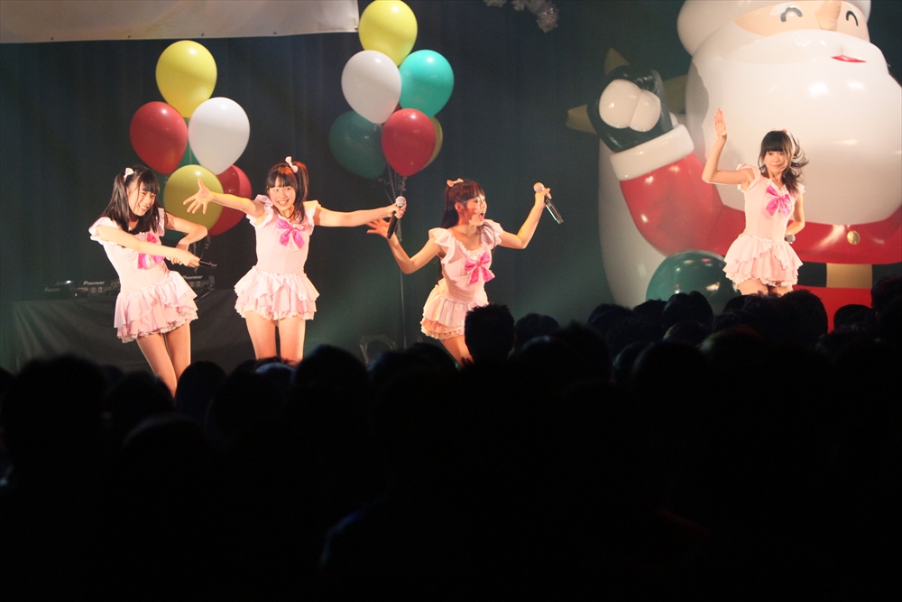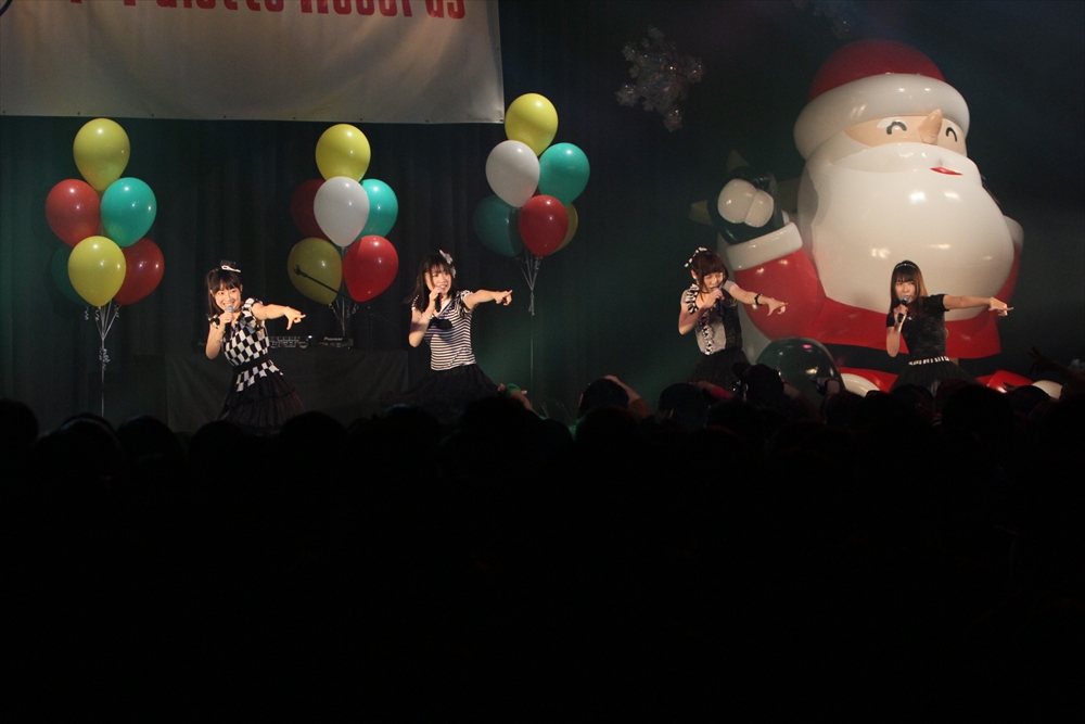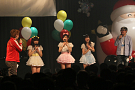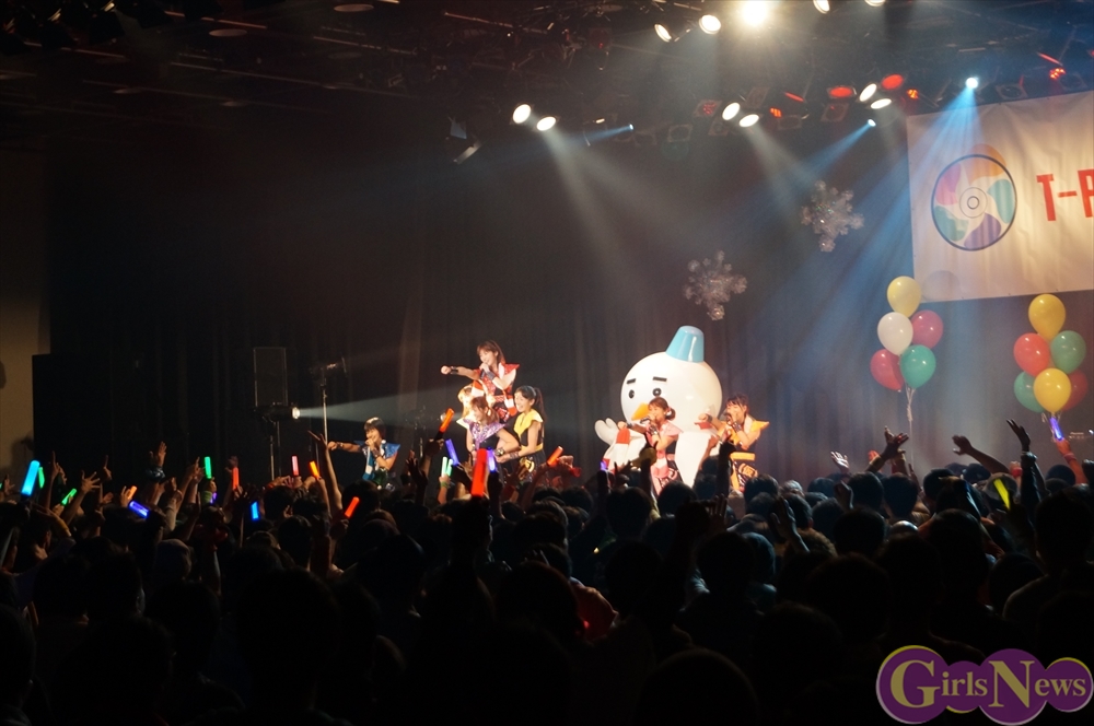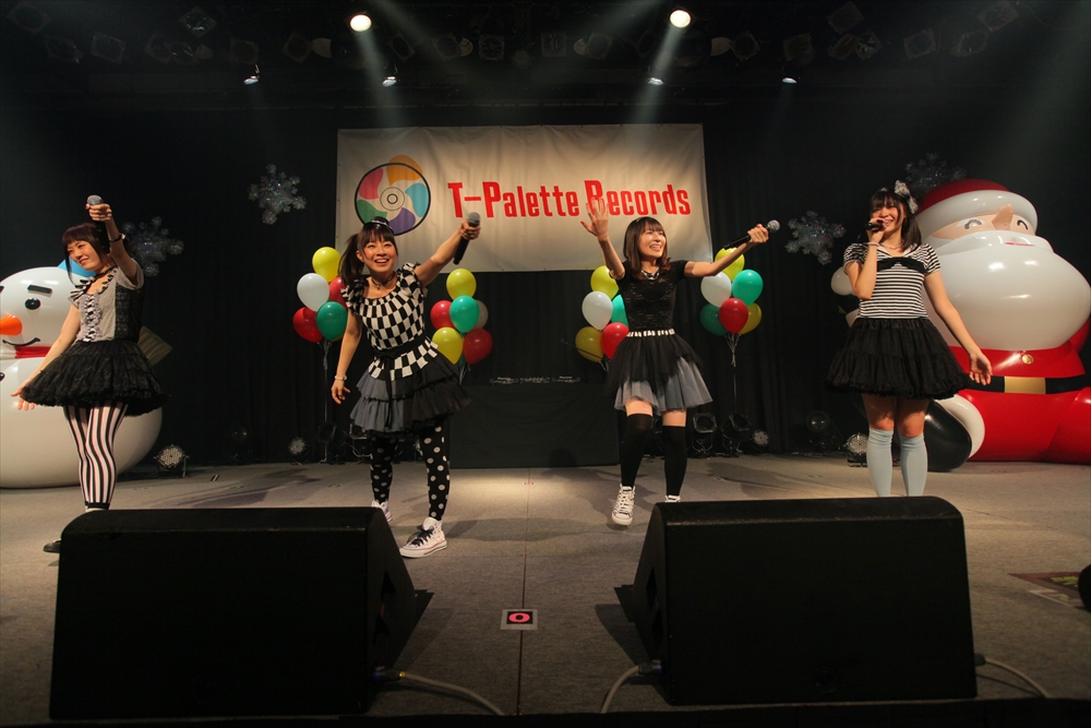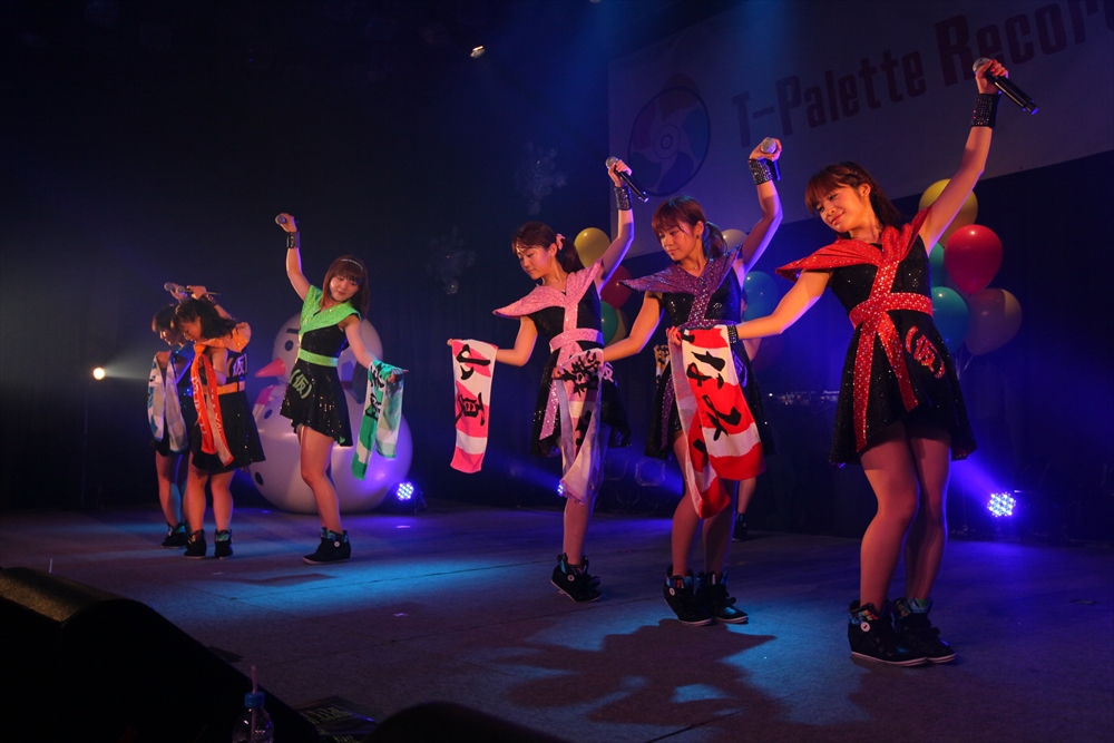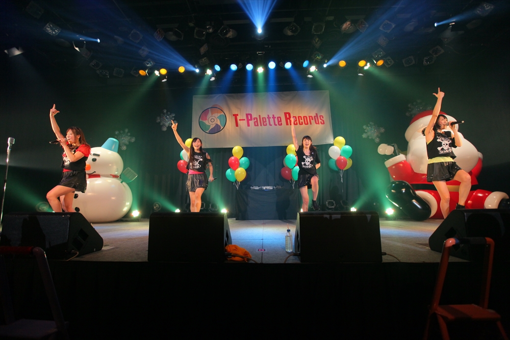 休憩をはさんで、後半の先頭打者を務めたのはNA-NA。お姉さんのキャラメル☆リボンとともに、今年からTパレの仲間に加わった4人組ユニットだ。この日はオリジナル曲2曲、カバー2曲の4曲を披露した。「キャンディー☆マシーンにのって」では、観客にサビでの合の手をお願い。他ユニットのファンに、その名前と実力をしっかりと売り込んだ。来年の抱負について尋ねられると、「全国ツアーをやりたい」と目標を大きく掲げたNA-NA。まだ実現していないTパレからのCDリリースも含めて、来年の活動を嶺脇社長がバックアップする約束も取り付けた。キャラメルリボンへの「ライバル宣言」も飛び出し、これからの飛躍を期待させてくれるライブとなった。