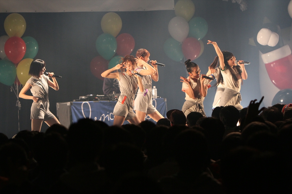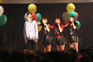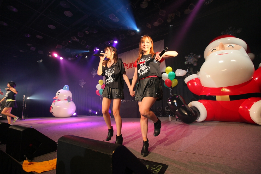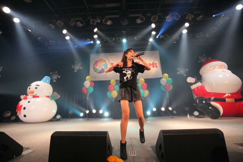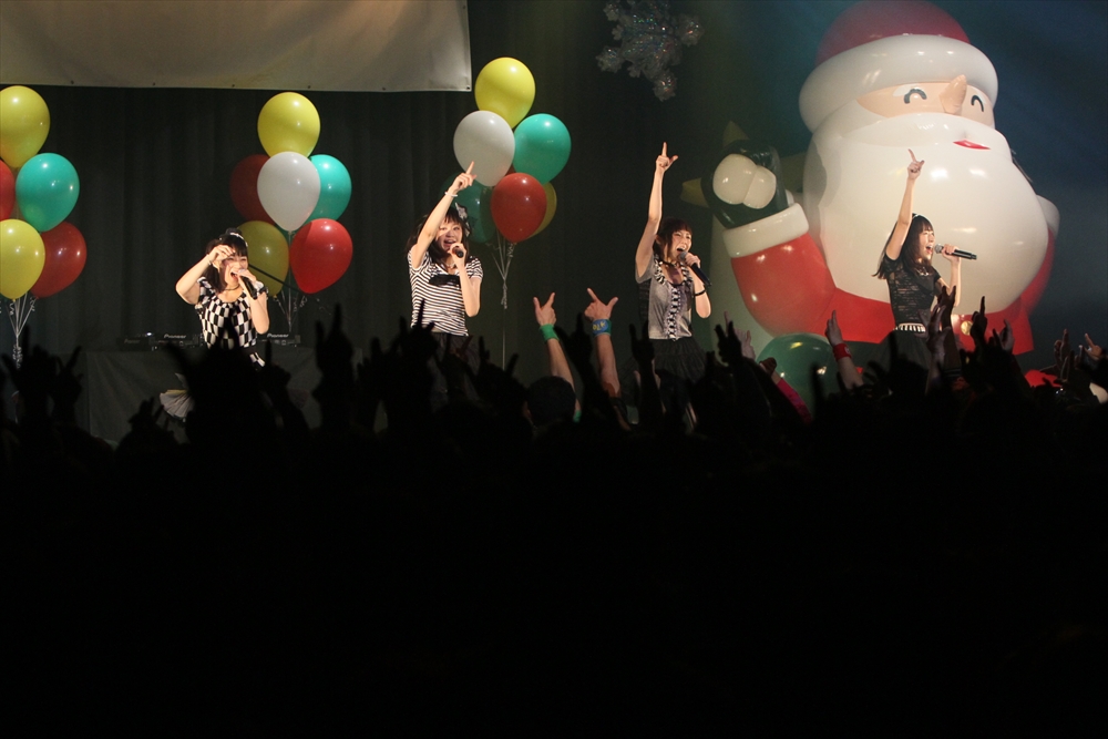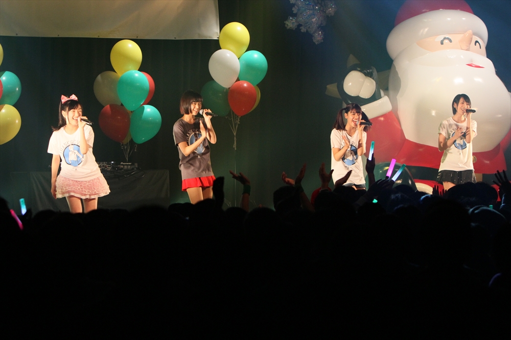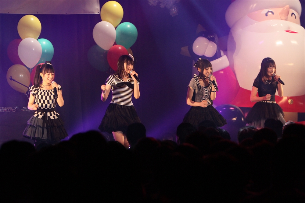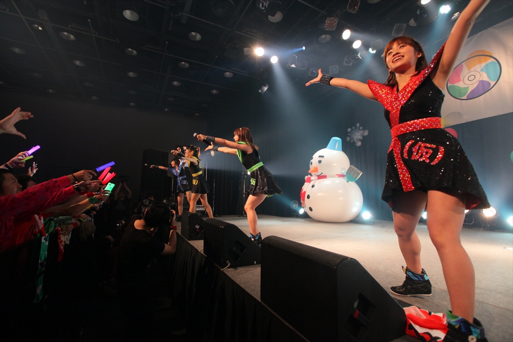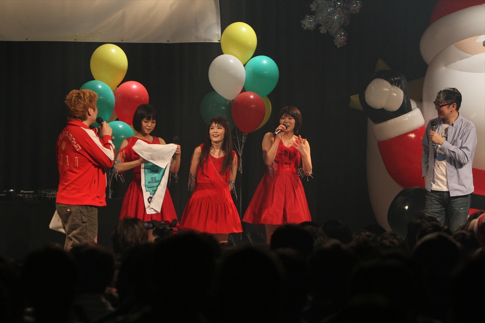 休憩をはさんで、後半の先頭打者を務めたのはNA-NA。お姉さんのキャラメル☆リボンとともに、今年からTパレの仲間に加わった4人組ユニットだ。この日はオリジナル曲2曲、カバー2曲の4曲を披露した。「キャンディー☆マシーンにのって」では、観客にサビでの合の手をお願い。他ユニットのファンに、その名前と実力をしっかりと売り込んだ。来年の抱負について尋ねられると、「全国ツアーをやりたい」と目標を大きく掲げたNA-NA。まだ実現していないTパレからのCDリリースも含めて、来年の活動を嶺脇社長がバックアップする約束も取り付けた。キャラメルリボンへの「ライバル宣言」も飛び出し、これからの飛躍を期待させてくれるライブとなった。