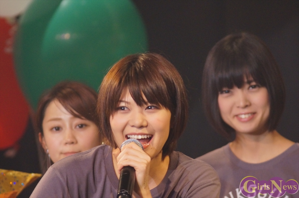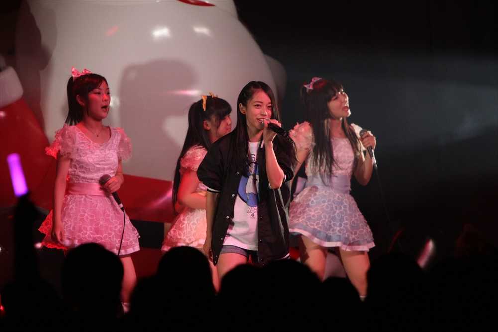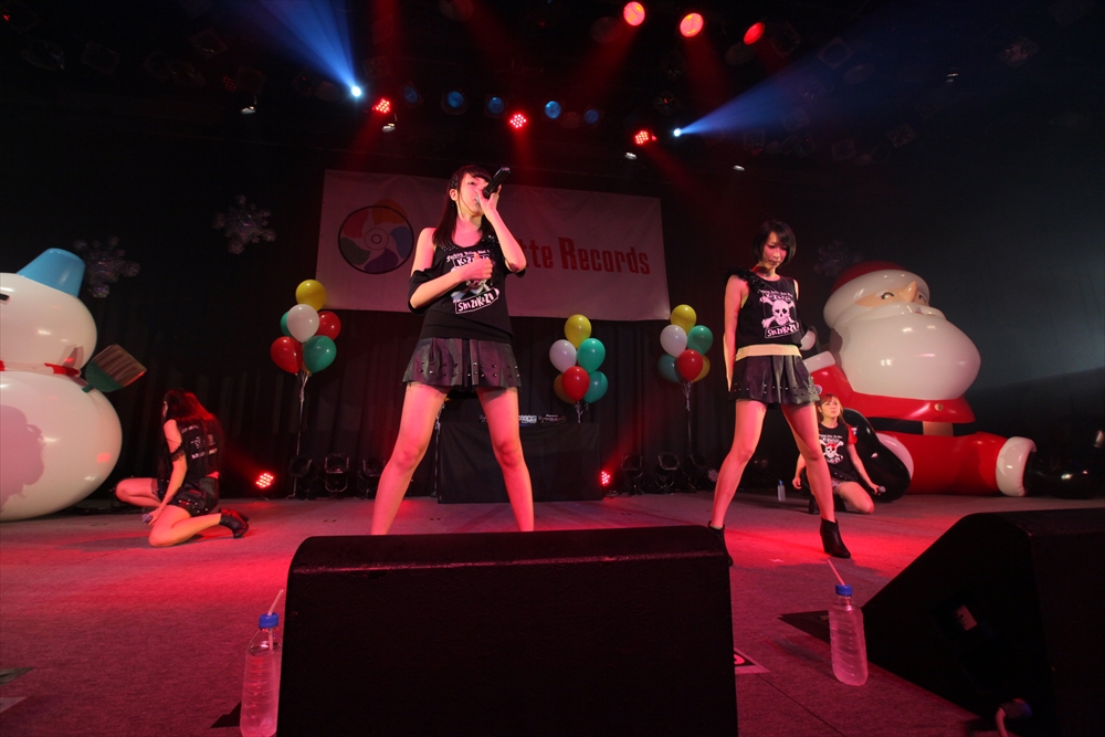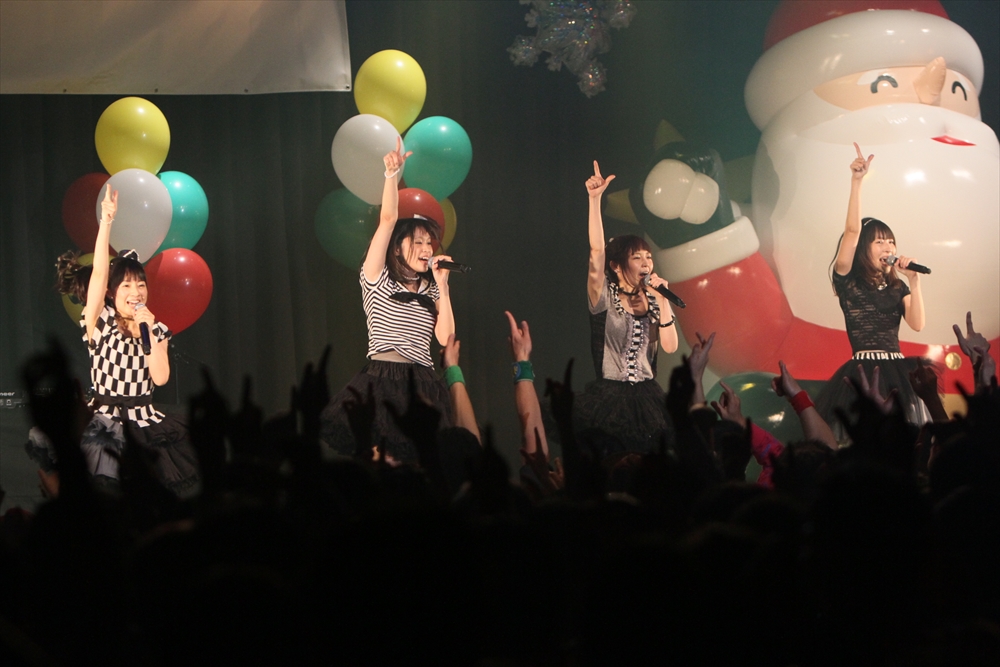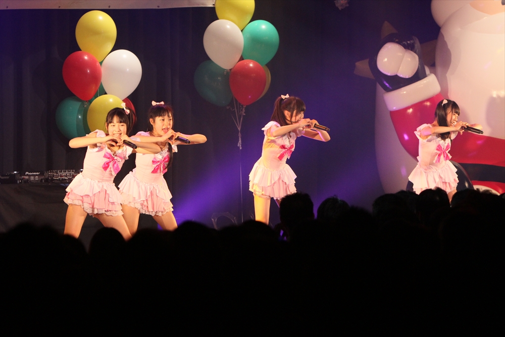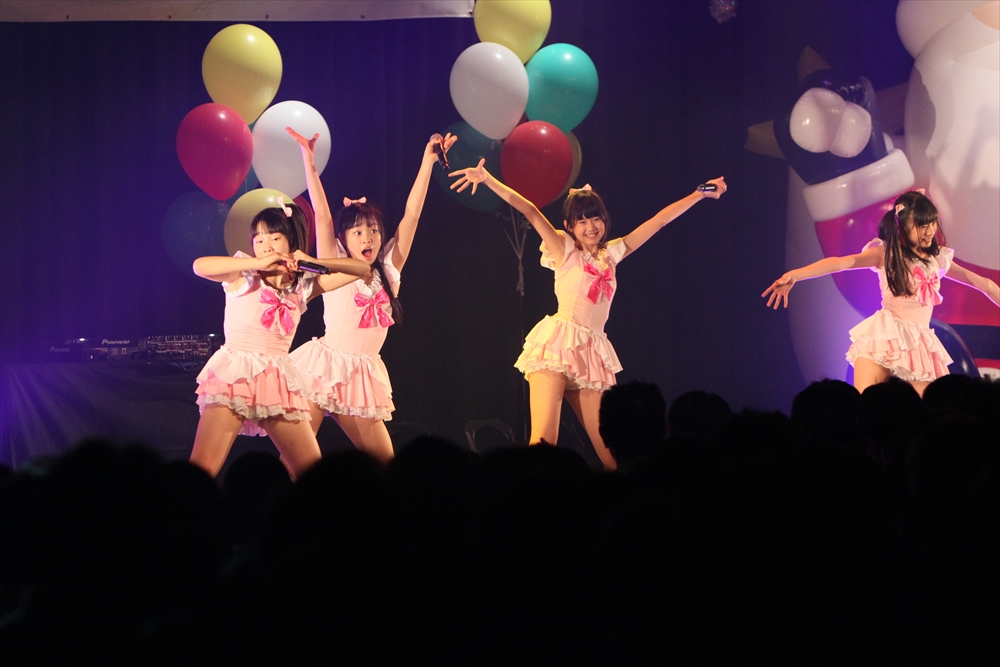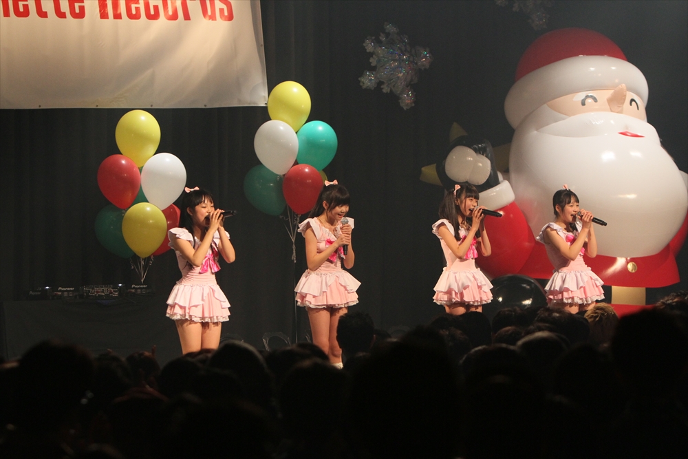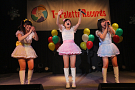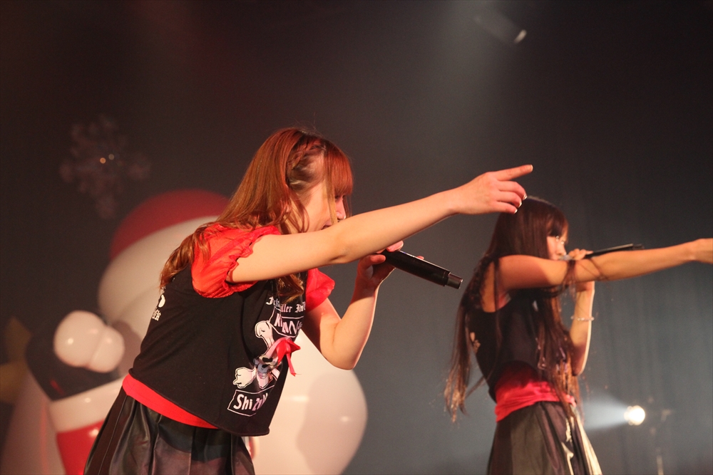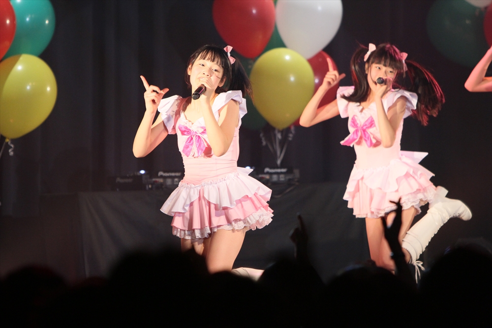 休憩をはさんで、後半の先頭打者を務めたのはNA-NA。お姉さんのキャラメル☆リボンとともに、今年からTパレの仲間に加わった4人組ユニットだ。この日はオリジナル曲2曲、カバー2曲の4曲を披露した。「キャンディー☆マシーンにのって」では、観客にサビでの合の手をお願い。他ユニットのファンに、その名前と実力をしっかりと売り込んだ。来年の抱負について尋ねられると、「全国ツアーをやりたい」と目標を大きく掲げたNA-NA。まだ実現していないTパレからのCDリリースも含めて、来年の活動を嶺脇社長がバックアップする約束も取り付けた。キャラメルリボンへの「ライバル宣言」も飛び出し、これからの飛躍を期待させてくれるライブとなった。