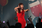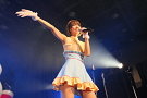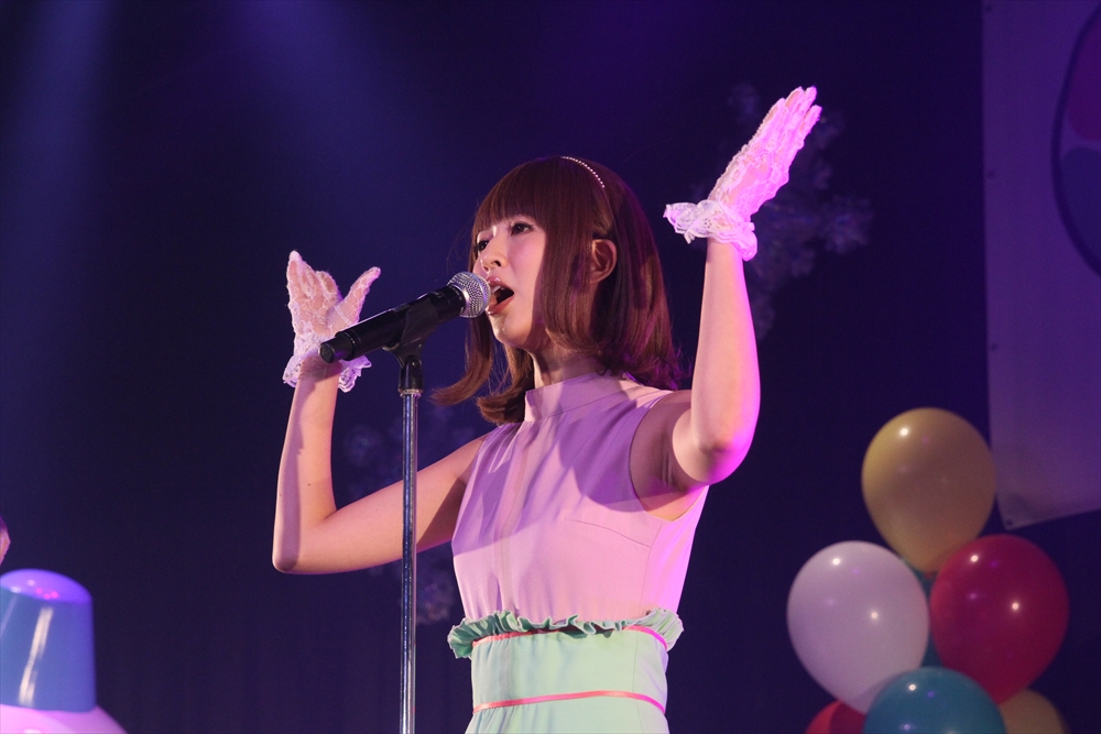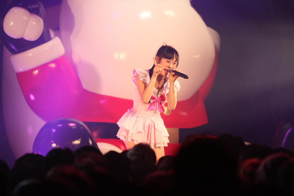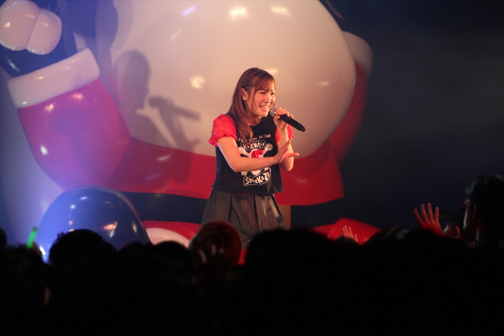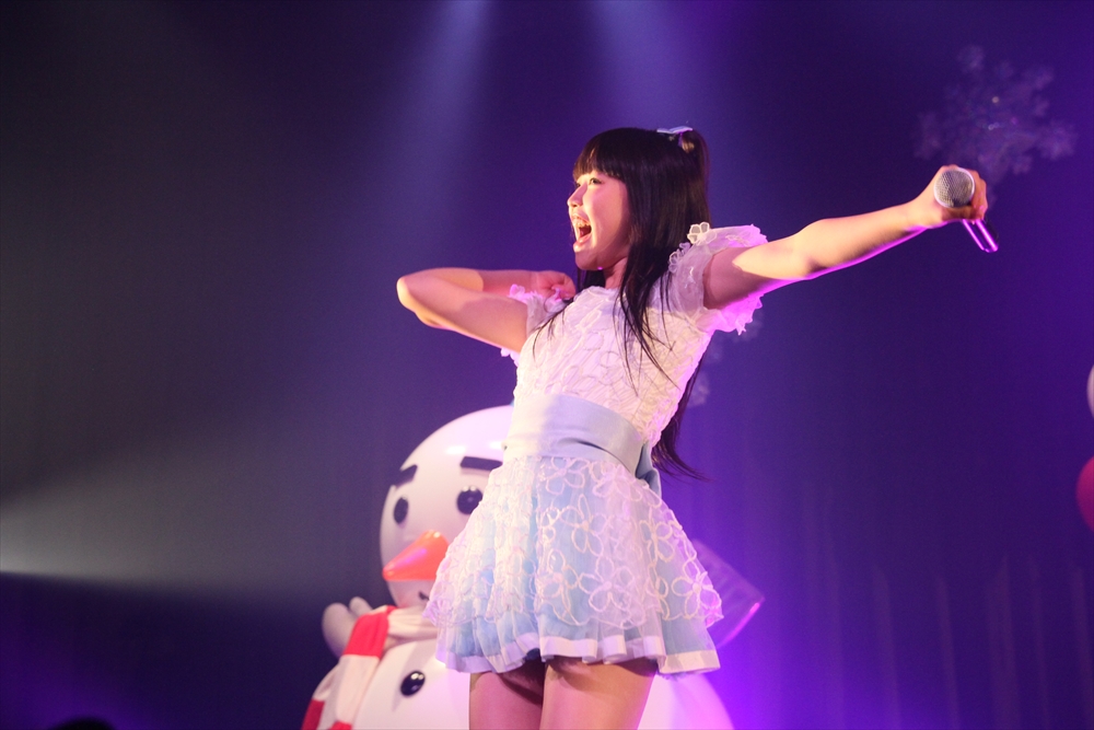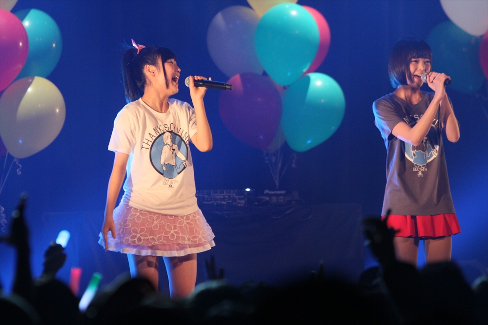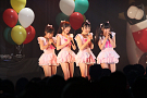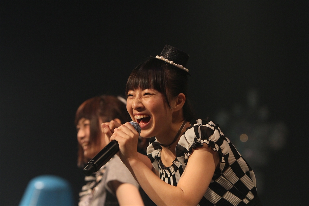 コラボを挟んでステージに上がったのは、ワンリルキスの4人。メンバー全員が声優と兼務している点は、異色のアイドルがそろうTパレの中でも目を引く存在だ。もちろん、彼女たちのアピールポイントはそのキュートな”声”。シングル曲中心のセットリストの中でその魅力を存分に振りまき、存在感を見せた。ワンリルキスも今回が初のTパレ感謝祭出演ということで、声優イベントとの違いを吉田さんに尋ねられると「楽屋に若い子がいっぱい」「更衣室がいいにおいがする」「誰もアニメの話をしていない」と、口ぐちに興奮した様子で話した。もともとはタワレコ新宿店の店員がレコメンドしたことで、Tパレ所属に至ったワンリルキス。声優としての活躍との相乗効果もあり、2014年も引き続き注目の一組と言えるだろう。