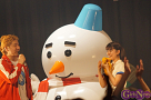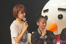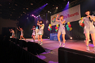 続いて、今年の夏にTパレ入りしたキャラメル☆リボンが登場し、Tパレからの初のリリースとなった「スタートリボン」をはじめとする3曲を披露した。キレキレのダンス、高音やハモリも難なくこなす歌唱力ももちろんだが、彼女たちの一番の魅力はその元気さ。初の感謝祭登場ながら、そうした自分たちの魅力をしっかりとアピールした。パフォーマンス後には、嶺脇社長に挨拶したいとキャラメルリボンのライブではおなじみの「天太郎さん」が登場。メンバーの上野天音さんのお父さんという設定の天太郎さんが自由奔放なMCを繰り広げ、百戦錬磨のMCの二人をタジタジにさせていた。