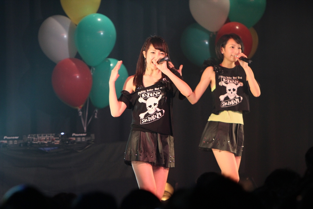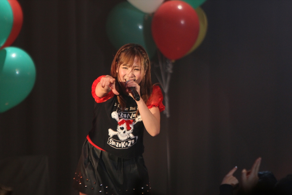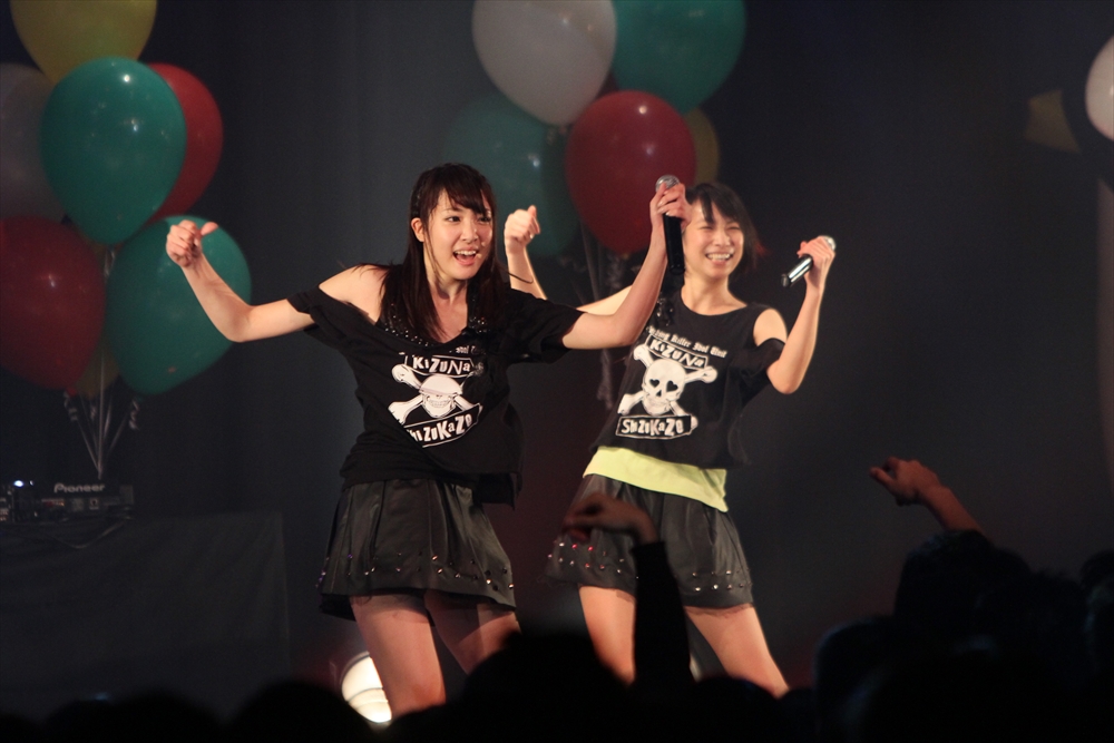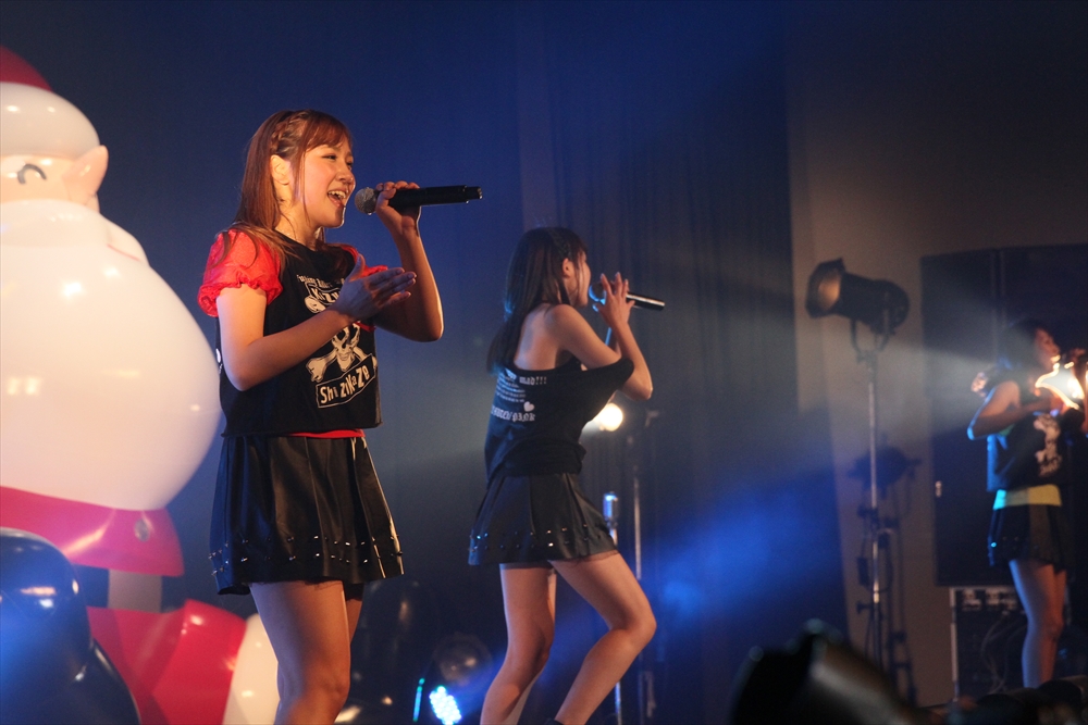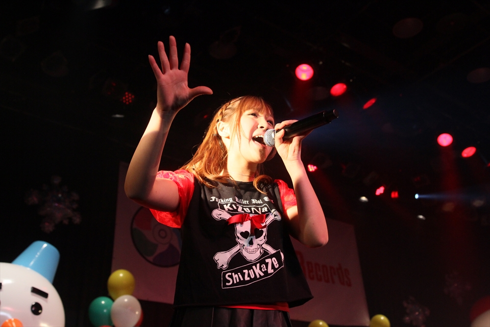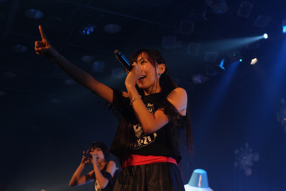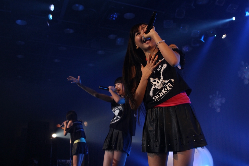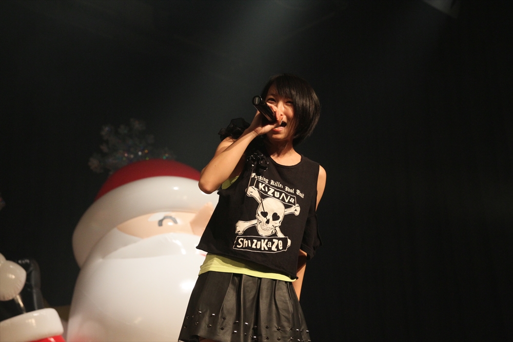 6組目にはしず風&絆~KIZUNA~が登場。通常はしず風の2人と絆~KIZUNA~の4人、計6人で活動しているが、この日はしず風の真野しずくさん・絆~KIZUNA~の美空さんが欠席し4人でのパフォーマンスとなった。しず風&絆~KIZUNA~の代名詞と言えば、アイドルの枠におさまらないパフォーマンス。登場前、MCの二人から「今日も暴れるんでしょうか」と期待されたが、「GROWING UP」では水を観客に吹きかけ、「歩いていこう」ではメンバーがファンの上を曲名通り「歩き」、期待にこたえた。また、去年に引き続き嶺脇社長が途中で登場し、一緒に『電車ごっこ』のステップを踏んだ。もちろん音楽性にも定評のあるしず風&絆。CRACK THE MARIANのカバーとなる「GROWING UP」は、オリジナルをよく知る吉田さんからも合格の評価が出た。4人もカバーした楽曲を歌っていたアーティストたちが、彼女たちのパフォーマンスをチェックしていることも多いというエピソードを明かし、今後の成長の糧としていた。日本中を駆け回る精力的な1年を終えようとしているしず風&絆だが、来年は音楽性と暴れっぷりにさらなる磨きがかかりそうだ。