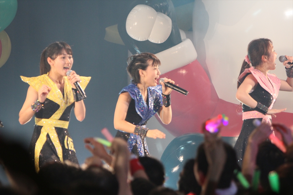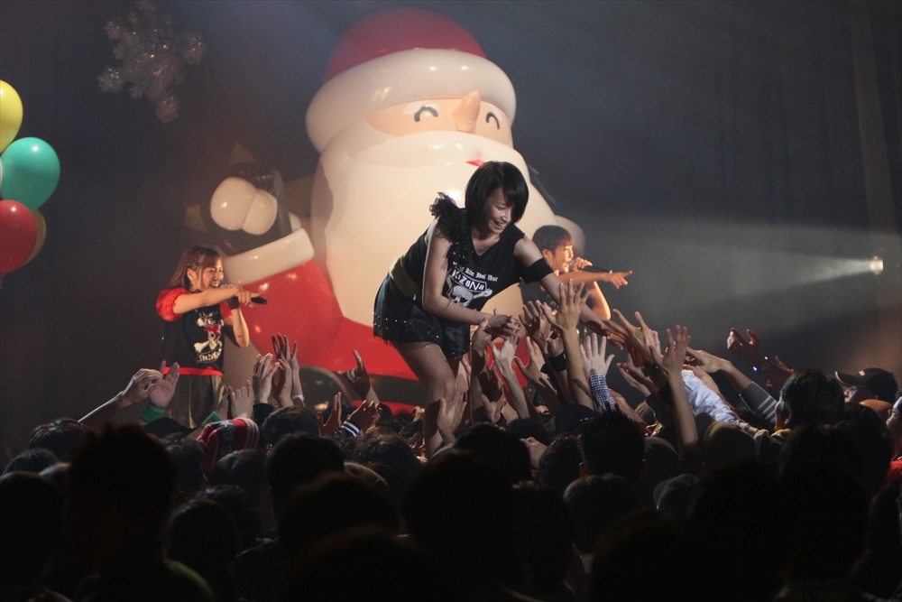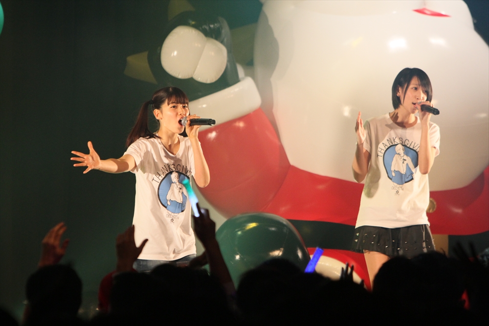 ライブはクライマックスに向かう。続いてステージに上がったのはNegiccoの3人。緑色のサイリウムで埋まった会場に3人が登場すると、観客から大きな歓声が上がった。ライブは全6曲。今年リリースされ、彼女たちの新たな代表曲となった「アイドルばかり聴かないで」では、さまざまなユニットのTシャツを着たアイドルファンが一緒になって「ざんね~ん」コールを叫び大きな盛り上がりを見せ、「圧倒的なスタイル」ではNegiccoラインダンスが会場いっぱいで行われていた。フロアでファンが肩を組み踊る一方、ステージ上ではアップアップガールズ(仮)の関根梓さん・森咲樹さんがサプライズで登場。Negiccoの3人と一緒になって、ラインダンスを踊った。10周年のメモリアルイヤーを終え、一回りも二回りも大きく成長したNegicco。もはやご当地アイドルという形容詞も似合わない彼女たちの冒険は、はたしてどこまで続くのだろうか。