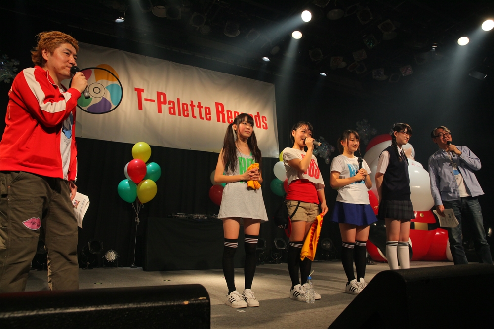 タワレコが自らレーベルを立ち上げ、アイドルをバックアップしているTパレ。年々アイドルシーンでの存在感を増し、今年は22枚のシングルを発売している。そんなTパレの『お祭り』となるこのライブも、今回で3回目。過去最多の参加ユニットを迎え、ラフォーレミュージアム六本木にはオールスタンディングながら立錐の余地も無いほどの観客が集まった。MCの吉田豪さん、嶺脇社長が登場すると、会場は大きな声援に包まれる。そして、ほどなくライブがスタートした。