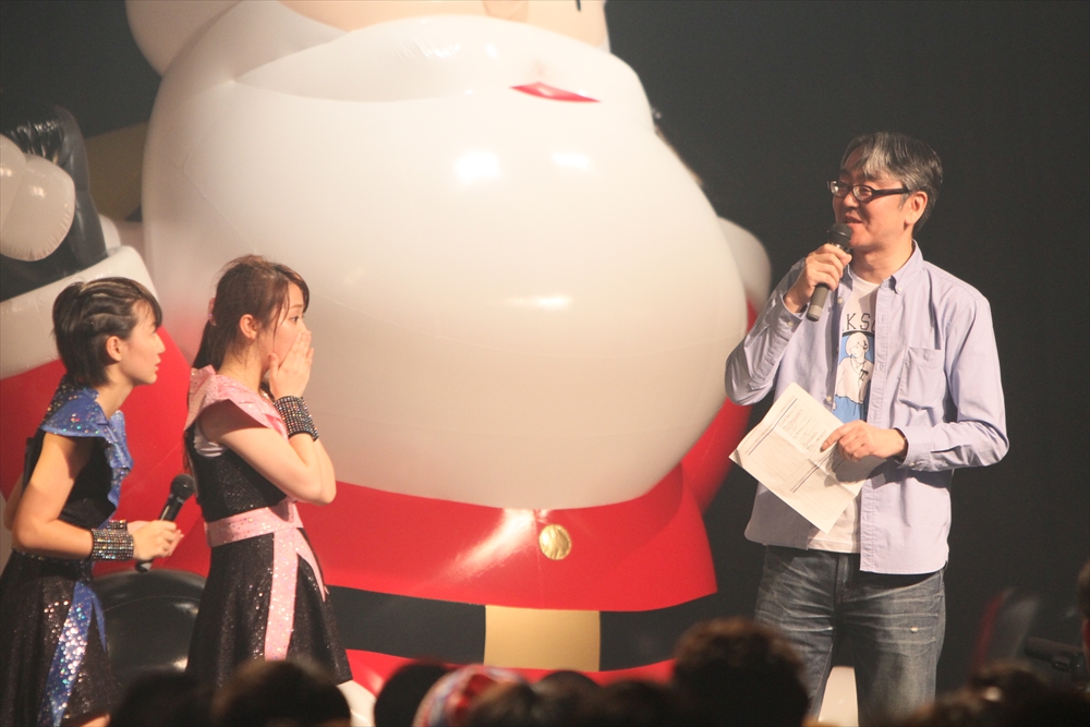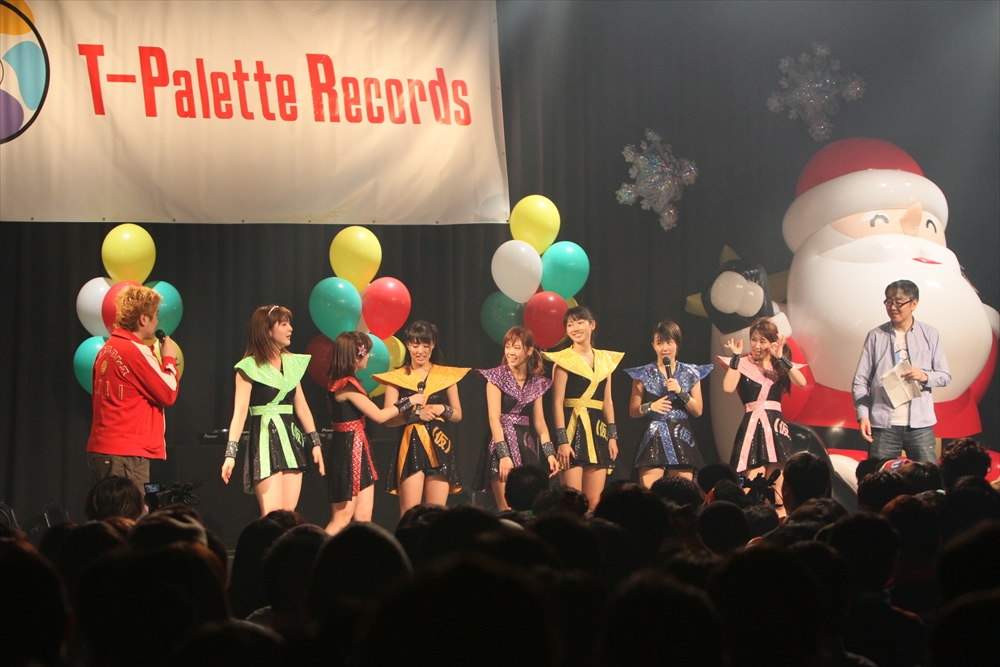 そしてトリを務めたのは、今やアイドルシーンを牽引する存在となったアップアップガールズ(仮)。Tパレのキャッチフレーズともいえる「No Music No Idol」を歌詞に組み込んだチョッパー☆チョッパーから始まり、全5曲を披露。「今年1年の感謝を歌とダンスで返す」という関根梓さんの意気込み通り、会場の熱気を絶やさない大迫力のステージを見せた。お正月の「ハロコン乗り込み」から始まり、8枚ものシングルリリースと精力的なライブ活動で充実の一年を終えようとしているアプガ。そんな彼女たちに、嶺脇社長から毎回恒例とも言えるサプライズ発表が。今回は春の全国ツアーの詳細について発表され、過去最大級の規模にファンとメンバーが喜びを共有する場面が見られた。また、東京公演の場所は未定となっているが、これは年末年始のライブやツアー他会場の動員、CDの売り上げを加味して決定することも通知。アプガの目標である、中野サンプラザでの開催にも含みを持たせた形だ。大躍進の2013年に続き、勝負の1年になりそうな2014年、メンバーは揃って「アイドル界の天下統一をしてみせる」と意気込んだ。ツアーについての詳細は、オフィシャルページをチェックしてほしい。