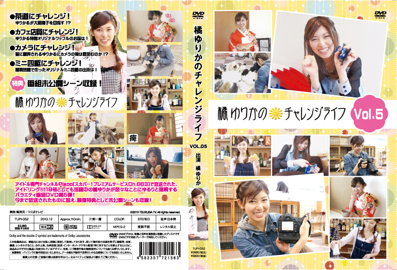 今回発売する「橘ゆりかのチャレンジライフVol.5」の内容は、「茶道にチャレンジ」、「カフェ定員にチャレンジ」、「カメラにチャレンジ」、「ミニ四駆にチャレンジ」と番組未公開シーンを詰め込んだ内容盛りだくさんの1枚となっている。