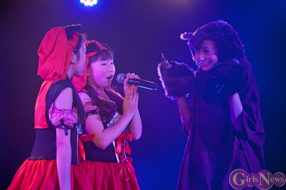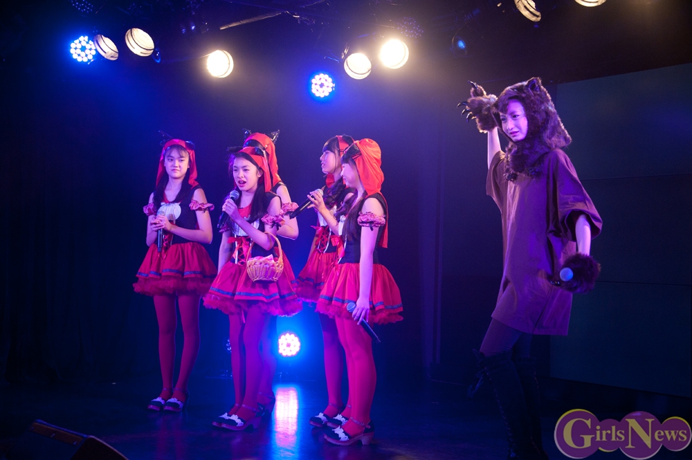 二部は赤ずきんちゃんの劇からスタート。赤ずきんちゃんに扮したメンバーが狼に襲われるというストーリーかと思いきや、何故か狼が怖くない、お兄ちゃんらしくないという話になり、本当のお兄ちゃんを探しに行くことに。そのまま「お兄ちゃんと呼ばせて」に突入。