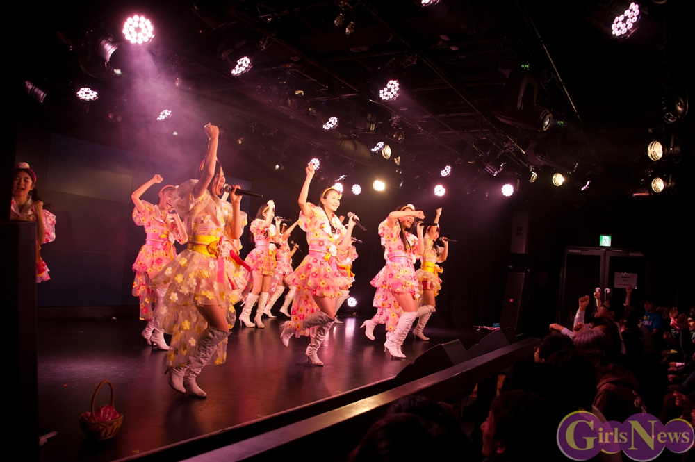 この日のライブはメンバー12人が登場し歌あり、踊りあり、演劇ありの三部構成。一部では「私のshyボーイ」「GEE」「私の花が咲く頃」「パパ-素直になれなくて-」の4曲を披露し会場を盛り上げた。