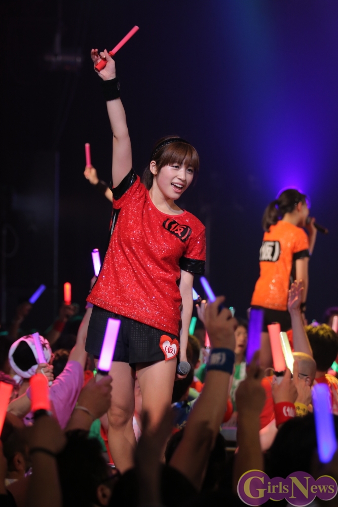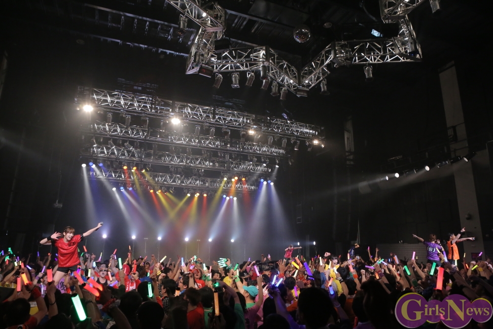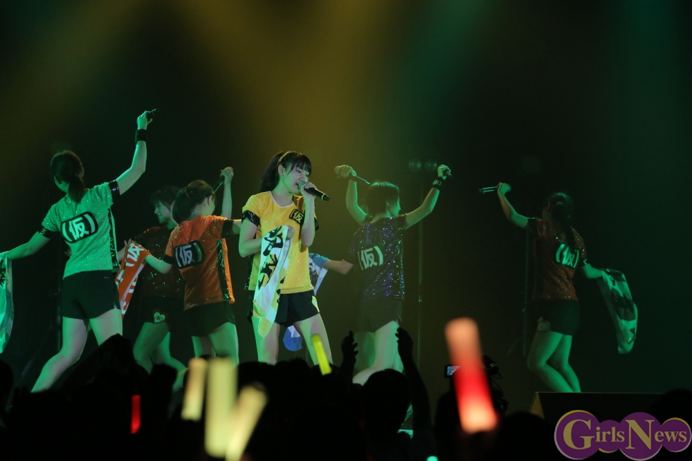 中盤のステージでは激しさの中『バレバレ I LOVE YOU』や新曲『虹色モザイク』でアイドルらしい可愛さも見せた。