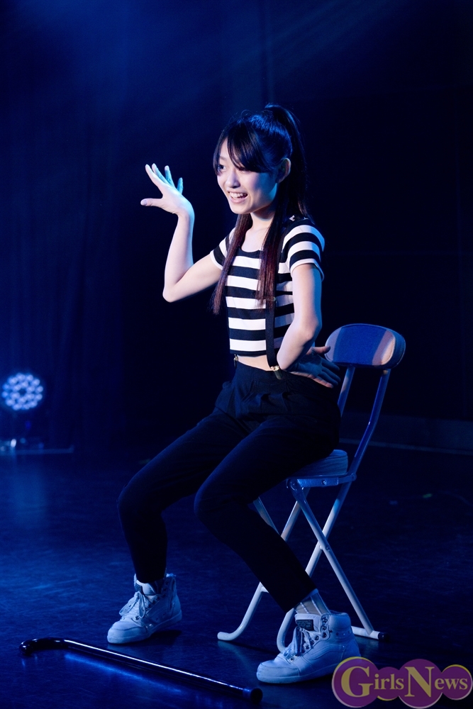 全員の自己紹介のあとは、結成後に追加として合流した伊藤千咲美、小栗かこ、平野沙羅の3人がステージに残り、最初のダンスナンバーについて伊藤千咲美さんが男の子の役のセンターをしたことについて、伊藤千咲美さんは「緊張して緊張してどうしようかと思ってました。でも、まほち(伊山摩穂)に本番出る前に、“千咲美ちゃん男になるんだよ”って背中を押してもらいました。」と明かす。