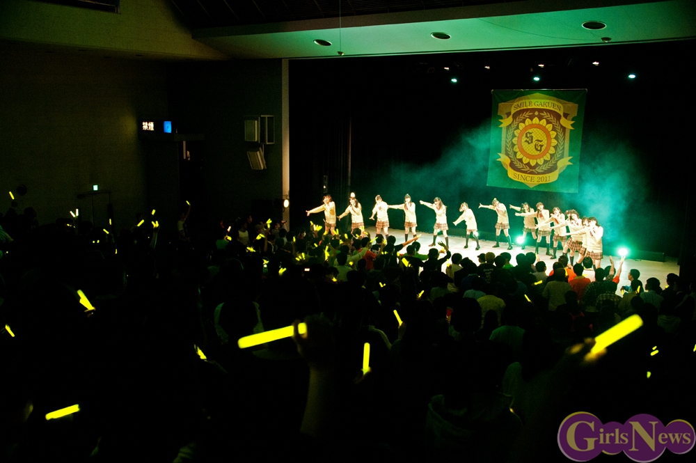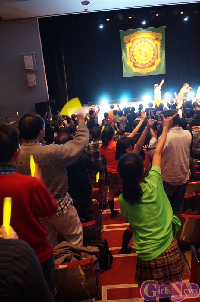 第1部と第2部の間に休憩時間が用意され、なんとその時間に、スマイル学園トライアウトが登場。スマイル学園トライアウトはスマイル学園の候補生で構成されており成績が優秀だと、将来はスマイル学園の正規メンバーに昇格があるとか・・・。ファンは我先にステージ前に押し寄せ、初々しく「スマイル学園」の楽曲を披露するスマトラのメンバーに夢中になっていた。