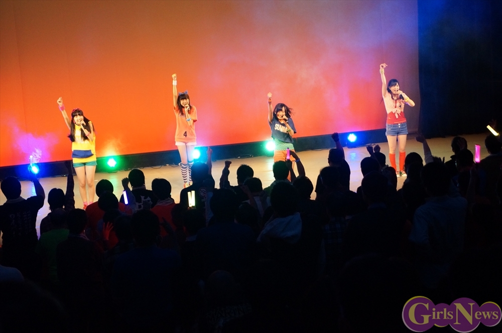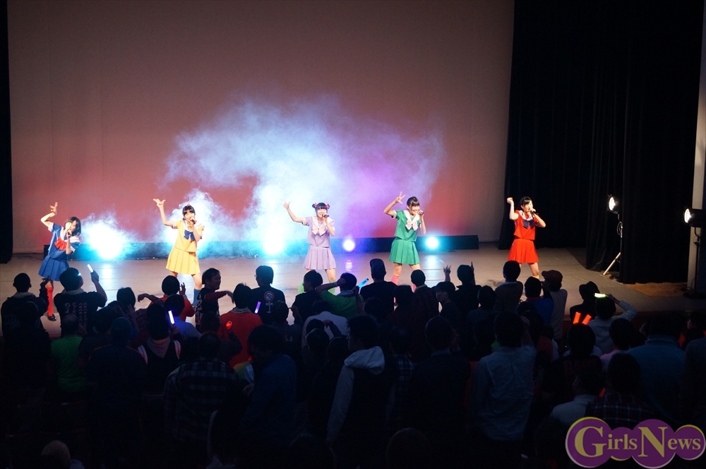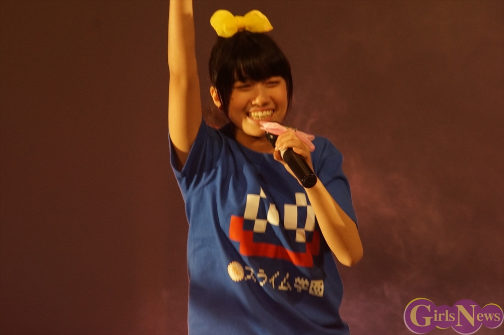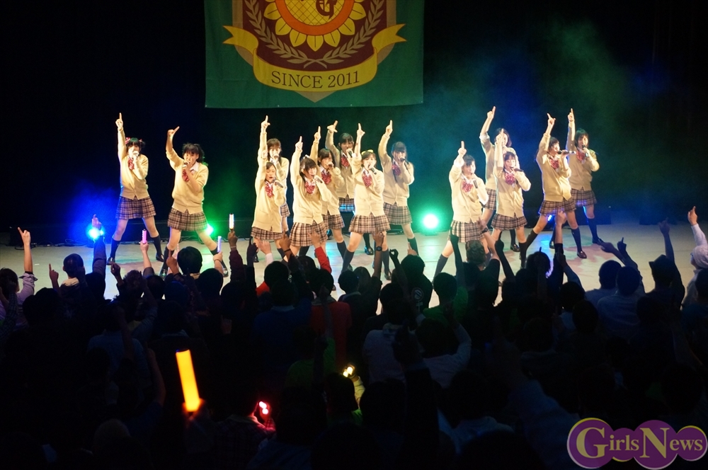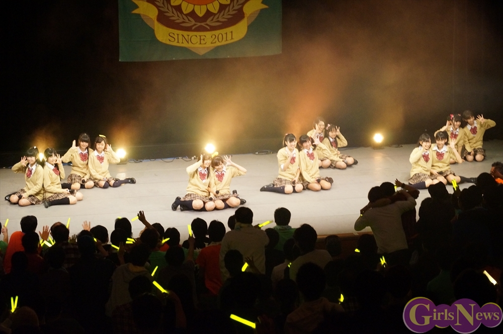 そして、スマイル学園と言えばこの曲、イントロが始まると、ファンは一斉に黄色のサイリウムを手に持ち、客席が黄色一色になる中「スマイル学園」の楽曲を披露。
