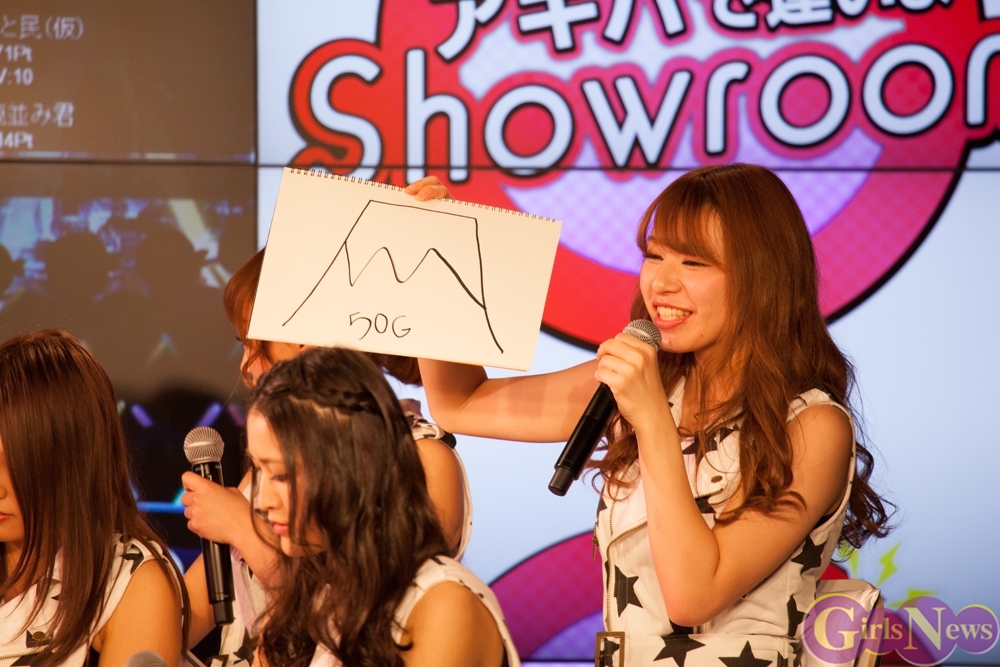 『Showroom』で使用できるオリジナルアイテムを作ろう!というコーナーでは、先日晴れて成人となった後藤夕貴がデザインした、サイリウムが好評を得ていた。また、好きなタイプを聞かれた諸塚香奈実が「配線系に強い人」と発言し、会場を笑いで包んだ。