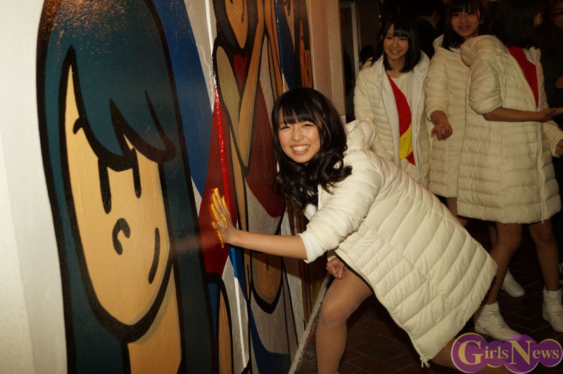 この日、メンバーの天野なつ・髙木悠未・吉川千愛・桃咲まゆ・瑞稀もえの5人が同所を訪れ、メンバーがカラフルな手形をそれぞれ付け、ニューシングルのヒットを祈願しながら手形を付け完成させた。